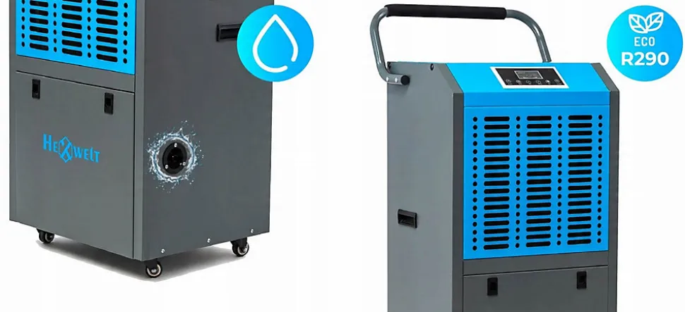 Efficace déshumidificateur Hexwelt HW-138L de puissance 1400 W et capacité 138 l/24 h efficacement élimine humidité de surfaces jusqu’à 240 m². Équipé de 10 L réservoir, système drainage et agent R290.