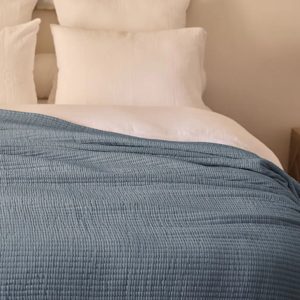 Dessus de lit 230×250 cm en coton lavé SEVILLE bleu abysseLaissez-vous charmer par ce dessus de lit matelassé boutis en coton lavé de la collection SEVILLE. Complice idéal pour les mi-saisons, sa composition en 100% coton lavé offrira confort et élégance à votre chambre. Son motif matelassé boutis permettra à ce dessus de lit de s’adapter à tous les intérieurs. Touche finale de votre décoration, il apportera une note éclectique à votre chambre à coucher avec ses mini-franges dans la largeur.Avec ses coloris doux, il peut aussi bien trouver sa place sur un fauteuil ou un canapé. Et pour les amateurs de lits bien finis, ce dessus de lit sera parfait pour également dissimuler matelas ou sommier et donner du cachet à votre pièce favorite. Sa finition avec ourlet dans la longueur et mini-franges dans la largeur sont la garantie d’un produit fabriqué avec soin au Portugal.La collection SEVILLE est certifiée OEKO-TEX, pour des produits meilleurs pour votre santé. Elle se décline en dessus de lit (180×250, 230×250 et 270×250 cm) et en plaid (125×180 cm), en 3 coloris.Côté technique :Matière : 100 % coton lavéGrammage : 430 g/m2Motif : matelassé boutisFinition : ourlet dans la longueur et mini-franges dans la largeurForme : rectangulaireDimensions : 230×250 cmDessus de lit vendu à l’unitéFabriqué au PortugalLes plus du produit :Linge de lit certifié Standard 100 OEKO-TEX, pour des produits meilleurs pour votre santé.Tailles disponibles : 180×250, 230×250, 270×250 cmExiste aussi en plaid : 125×180 cmLa collection SEVILLE est disponibles en trois colorisCôté pratique :Entretien facile : lavage en machine à 30°C ; séchage en tambour interdit ; javel et chlore interditsConseils : Lave