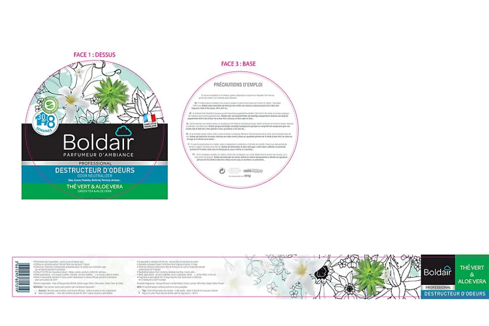 Destructeur d’odeurs Boldair gel thé vert et aloe vera 300g