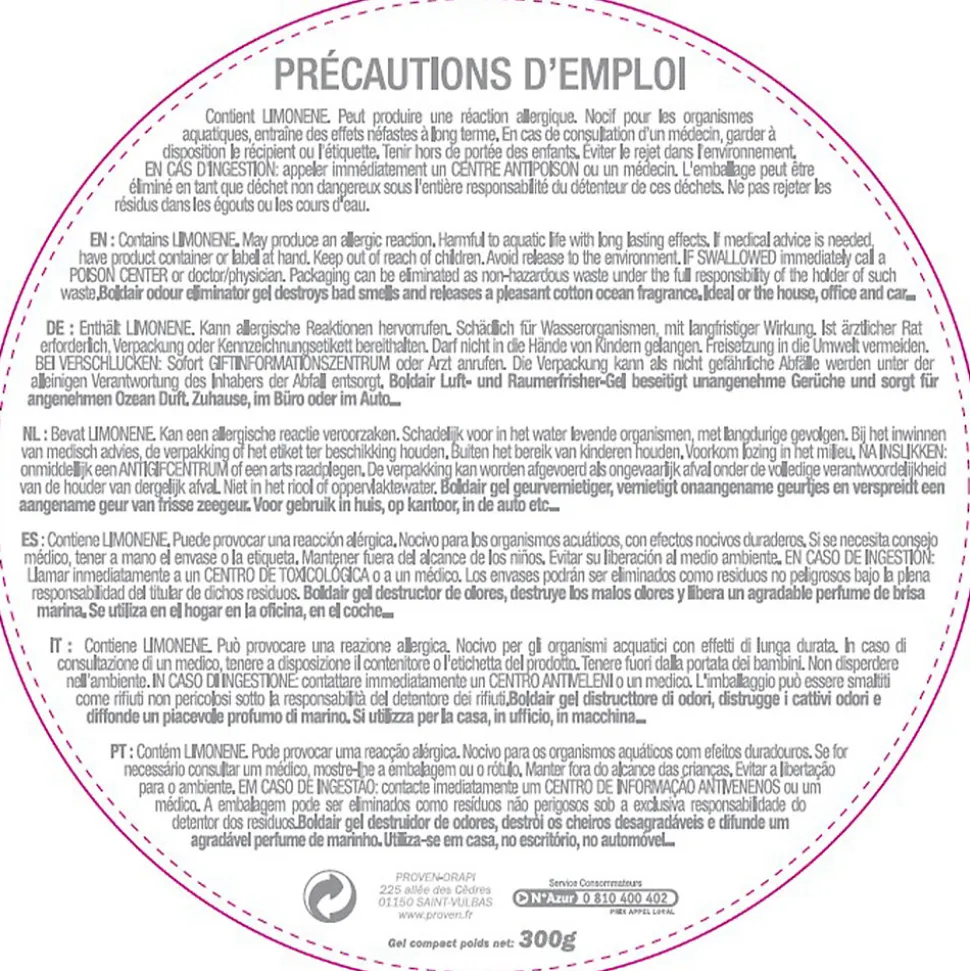 Destructeur d’odeurs gel Boldair grand large 300g
