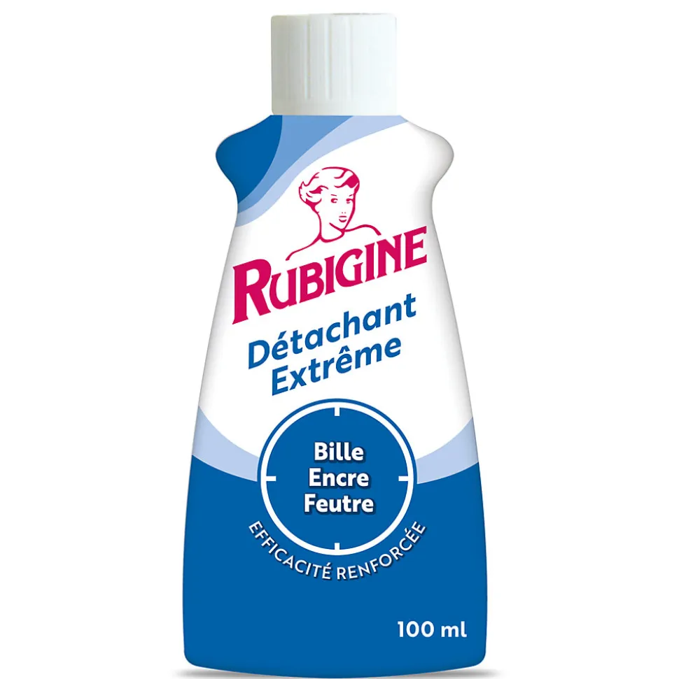 Rubigine – Détachant extrême Bille, Encre, Feutre (100 ml) Élimine efficacement les taches tenaces d’encre, de stylo bille, de feutre, de stylo plume et de marqueur fluo. Formule sans javel, respectueuse des textiles lavables tels que coton, synthétiques, laine et soie. Agit en profondeur sans altérer les fibres. Mode d’emploi : après avoir retiré l’excédent de la tache, imbiber généreusement la zone concernée, humidifier à l’eau chaude, laisser agir quelques instants, frotter légèrement, puis rincer à l’eau tiède. Renouveler l’opération si nécessaire. Pour les couleurs délicates, effectuer un essai préalable sur une partie cachée. Produit fabriqué en France. Contenance : 100 ml.