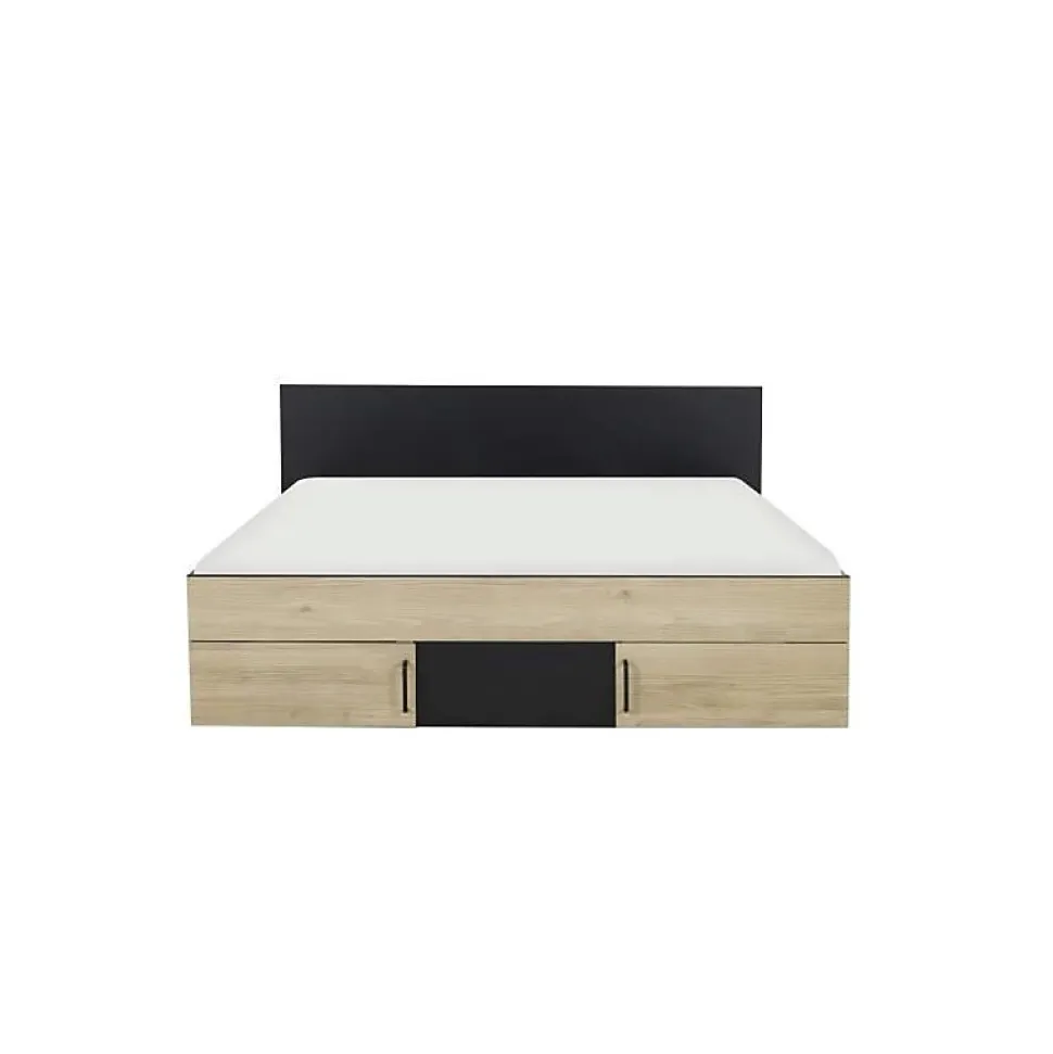 Découvrez notre Lit Rangement 160 X 200 SWIVEL, une fusion de praticité et de style contemporain. Sa structure en panneaux de particules revetus de papier Châtaignier naturel et uni Noir offre une esthétique sophistiquée et une durabilité remarquable. Les chants uni Noir ajoutent une touche d’élégance supplémentaire a son design épuré. Équipé de deux tiroirs a ouverture pivotante en pied de lit, ce lit offre un espace de rangement généreux avec des dimensions pratiques de 45×45 cm chacun. De plus, les deux casiers latéraux avec une séparation offrent une solution de stockage supplémentaire pour garder vos affaires organisées. Les poignées en ABS noir apportent une touche de modernité et de contraste subtil au design. Grâce a sa réversibilité gauche/droite au montage, ce lit s’adapte parfaitement a la configuration de votre espace. Veuillez noter que le sommier et le matelas ne sont pas inclus, vous permettant ainsi de personnaliser votre confort de sommeil selon vos préférences.