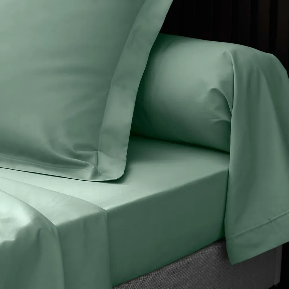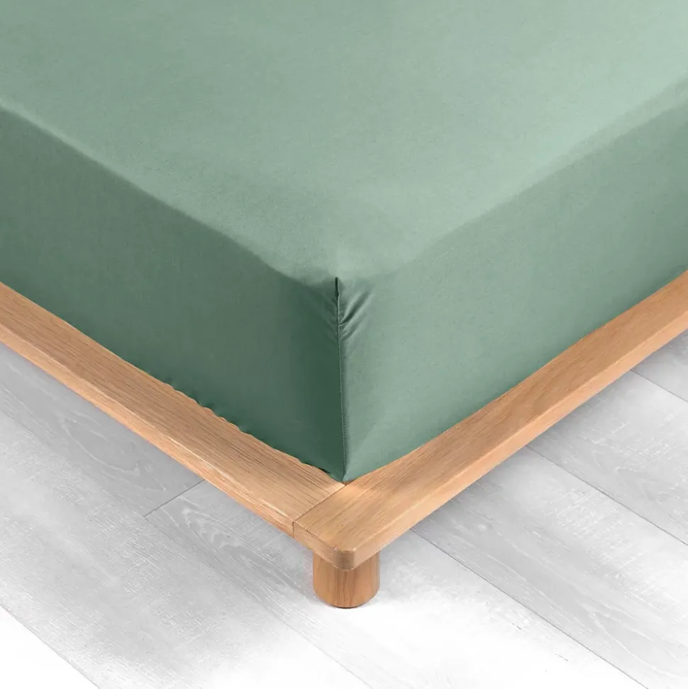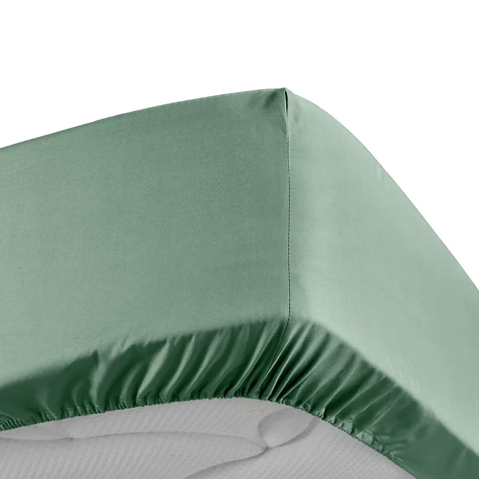 DRAP HOUSSE 2 PERSONNES PERCALE UNI 78 FILS PERCALINE TILLEUL – 160x200cm – Vert tilleul