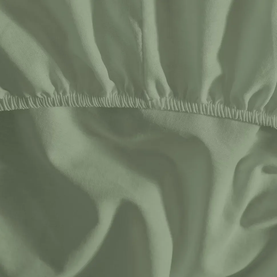 Drap housse en coton lavé biologique bonnet 30 cm Sauge 160×200 cm ORGANIKA