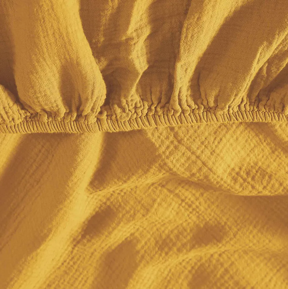 Drap housse en gaze de coton bonnet 30 cm Caramel 180×200 cm LOFT