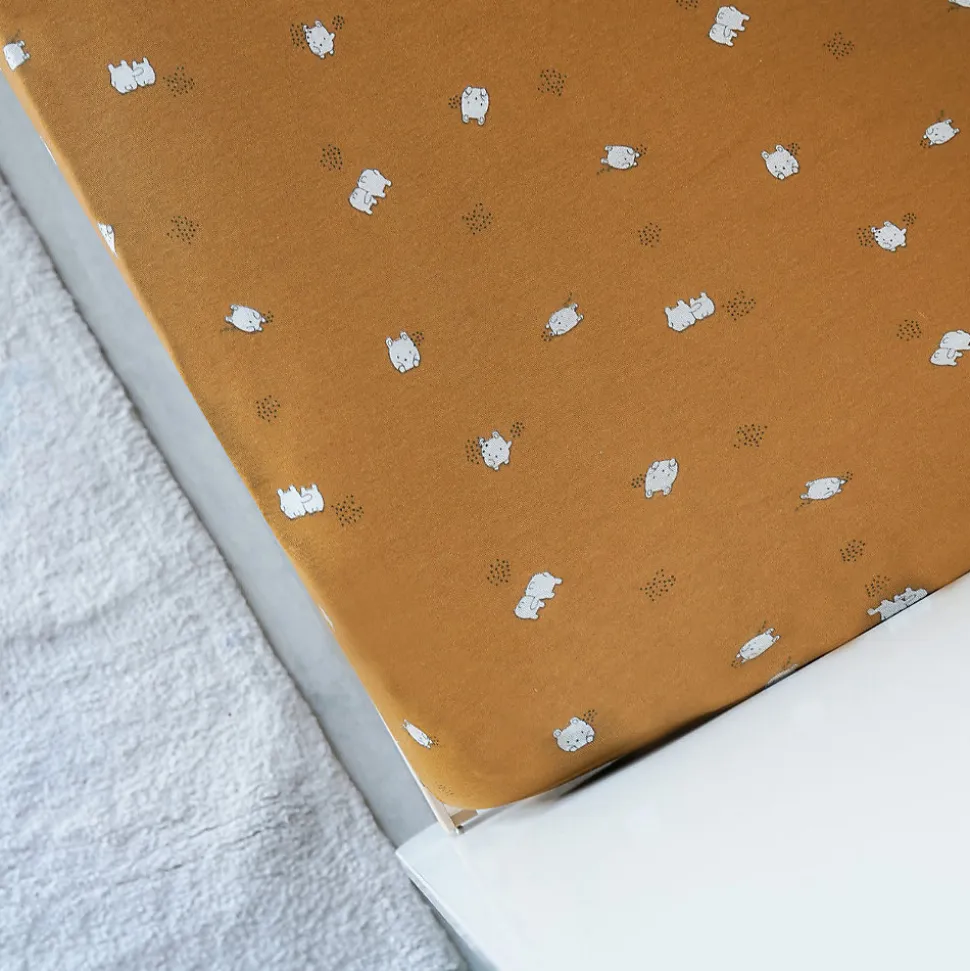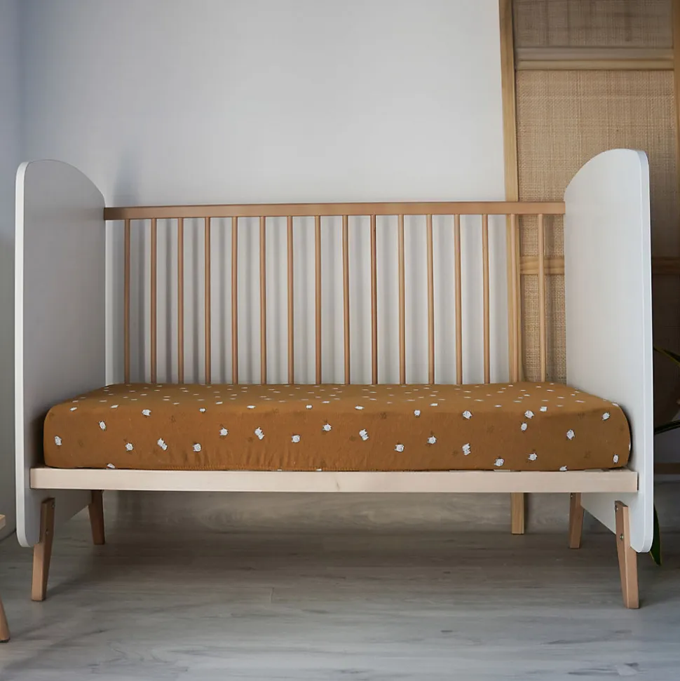 Drap-housse enfant en jersey de coton Apportez une touche de fantaisie et de douceur au lit de votre tout-petit avec ce ravissant drap-housse imprimé. Plus qu’un simple linge de lit, il contribue à créer un univers apaisant, parsemé de charmants petits Boubous ivoire sur un fond caramel chaleureux. Confectionné en jersey de coton extensible, ce drap-housse est doté d’un élastique sur tout son pourtour, garantissant un maintien parfait même si votre enfant gigote dans son sommeil. Ce tissu doux et respirant, assure un confort optimal en régulant la température corporelle de bébé et en lui offrant des nuits paisibles. Pour un sommeil sécurisé, utilisez une gigoteuse adaptée à l’âge et à la saison de votre enfant, en évitant couvertures ou couettes jusqu’à l’âge de 2 ans. Ce drap-housse s’intègre dans une collection pensée pour le bien-être des tout-petits, avec des gigoteuses assorties parfaites pour les nuits fraîches. Une belle idée pour compléter votre liste de naissance ! Caractéristiques : Drap-housse pour lit enfant Imprimé all over de petits personnages ivoire sur un fond caramel Élastiqué sur tout le pourtour pour un ajustement parfait Réalisé en jersey de coton, souple, doux et respirant Composition : Jersey 100 % coton Entretien : Lavable en machine à 30 °C Lavage conseillé avant la première utilisation