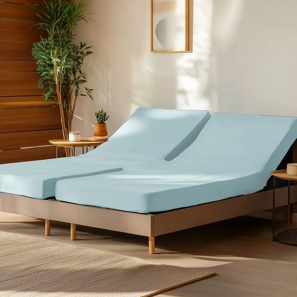 Ce drap housse est conçu pour les sommiers avec tête et pieds relevables pour 2 matelas articulés de 70 cm, 80 cm ou 90 cm de largeur chacun.Le bonnet est de 30 cm, et avec ses élastiques aux 4 coins, il s’adaptera parfaitement à vos matelas entre 25 cm et 30 cm de hauteur. Doté du traitement Easy Care qui est un traitement appliqué au linge de lit pour faciliter l’entretien et réduire le froissage. Le repassage sera beaucoup plus facile. Notre percale de coton est tissée en utilisant des cotons très fins, de qualité supérieure avec de longues fibres. Le tissage serré en 80 fils/cm² (200 TC au inch²) est idéal pour assurer une douceur et un confort d’utilisation exceptionnels. Elle est très appréciée en literie pour son toucher soyeux, doux et sa résistance au temps. Coordonnez votre linge de lit avec les housses de couette et taies d’oreiller de la même gamme en recherchant Soft Percale Sensei.Pour une meilleur protection de votre matelas, optez pour nos protèges matelas en faisant la recherche Sensei Protection.Caractéristiques du linge de lit SOFT PERCALE Sensei Maison :100% percale de coton très fin de qualité supérieure80 fils/cm² (plus le tissage est élevé, meilleur est sa résistance et son toucher)Hauteur des bonnets : 30cmFacile d’entretien – Lavable en machine 60° – Séchage modéréDepuis des décennies, Sensei Maison vise à rendre vos intérieurs cocooning. Au travers de nos collections tendances, uniques et design notre ambition a toujours été de privilégier un rapport qualité/prix le plus juste.En savoir plus :Ce produit est certifié de la norme OEKO-TEX Standard 100 – Cette certification vise à garantir la non-toxicité des textiles et des colorants