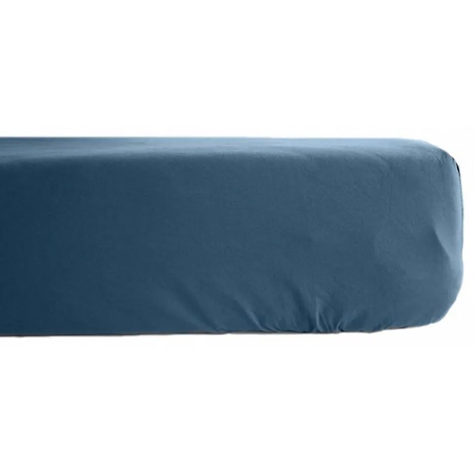 Drap housse percale pur coton peigné longues fibres 80 fils/cm² avec bonnet de 35 cm Vent du sud - Marine - 180 x 200 cm bonnet de