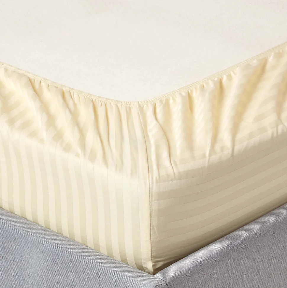 Drap-housse rayé 180 x 200 cm 100% coton égyptien 330 fils coloris jaune pastel – HOMESCAPES