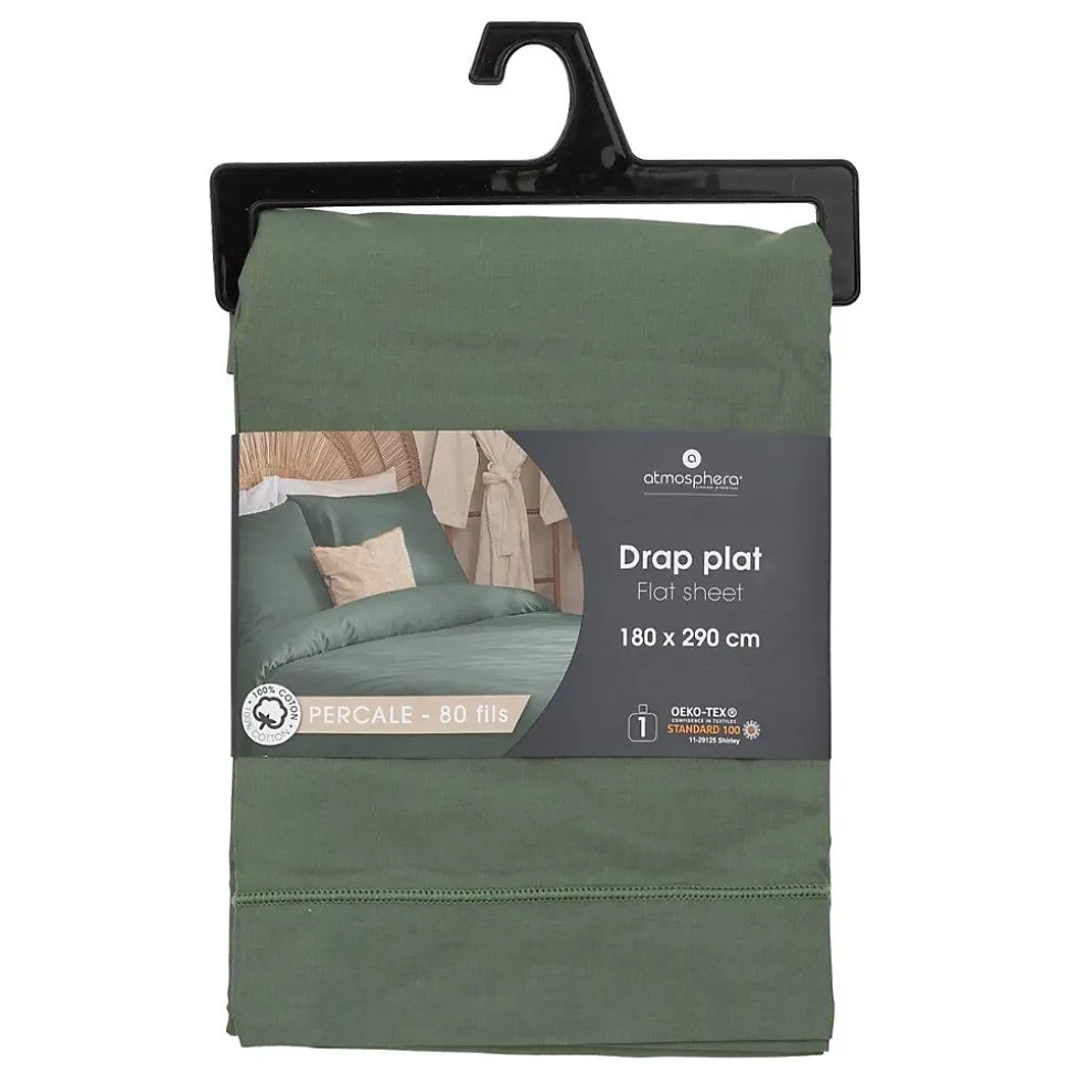 Laissez-vous séduire par le drap plat en percale Atmosphera ! Durable et esthétique, il vous offrira un grand confort.Du linge de lit élégantPensé pour s’adapter à un grand couchage de 2 personnes, ce drap plat en percale de coton se distingue par sa douceur, qui s’accentuera au fil des lavages. Proposé dans un coloris facile à coordonner, il vous permettra de laisser libre cours à vos envies déco !Associez votre drap plat à une jetée de lit Atmosphera pour compléter cet univers.Le petit plus décoChoisissez un jeu de coussins colorés et déposez une touche raffinée dans votre chambre à coucher.