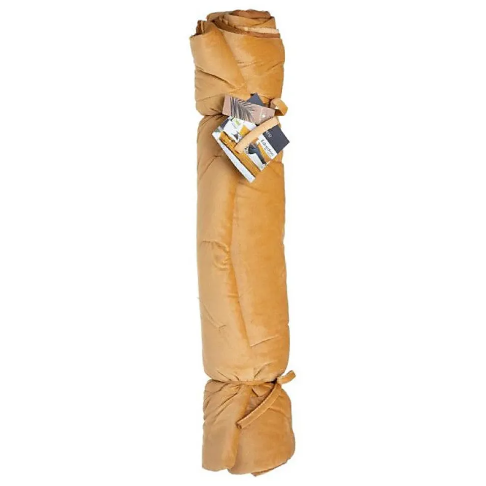 Edredon en velours Sonia 80 x 180 cm Atmosphera — dessus en velours de polyester, garnissage polyester 150 g/m². Chemin de lit doux et soyeux, lavable en machine jusqu’à 40°C, coloris ocre/jaune, poids 0,6 kg.