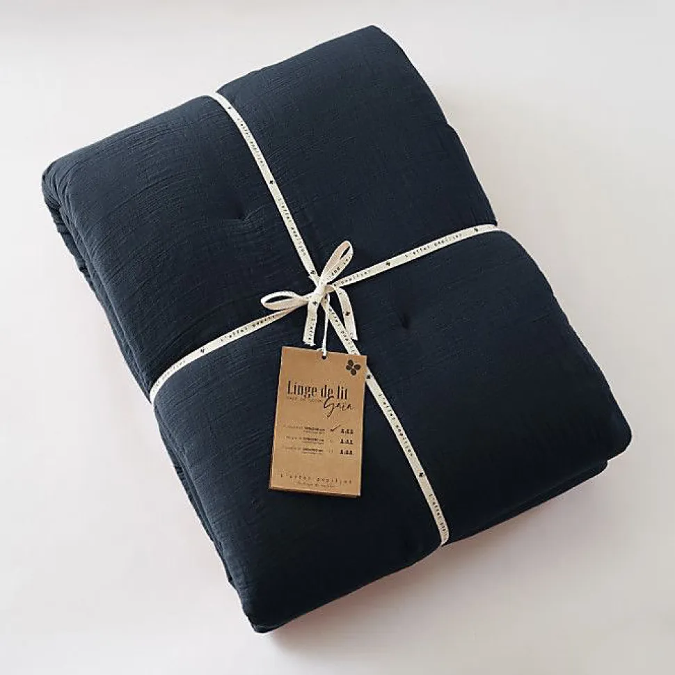 Edredon ou Bout de lit "Gaïa" toutes dimensions "Gaze de Coton" l'Effet Papillon - Gaia Minuit - 180 x 240 cm