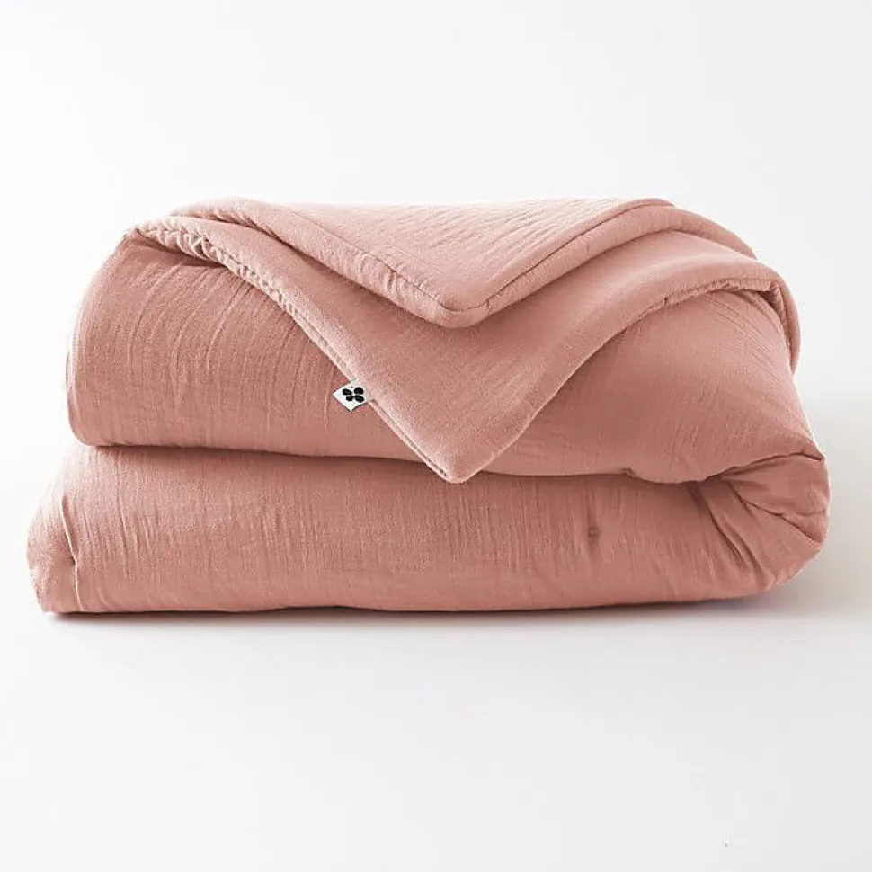 Edredon ou Bout de lit "Gaïa" toutes dimensions "Gaze de Coton" l'Effet Papillon - Gaia Rose Pêche - 180 x 240 cm