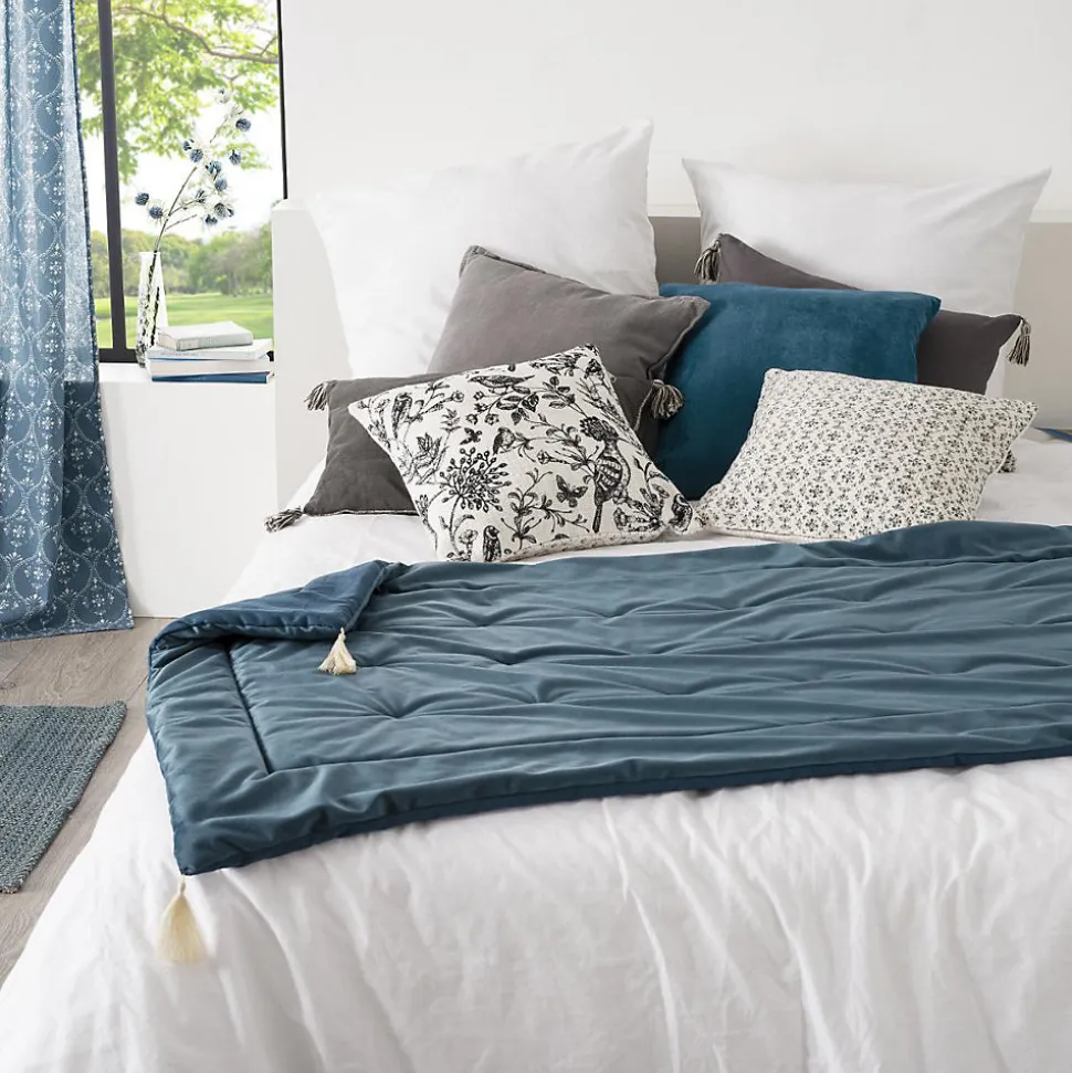 Edredon Sonia en velours – bleu 80×180 cm – Atmosphera