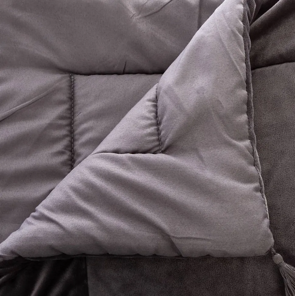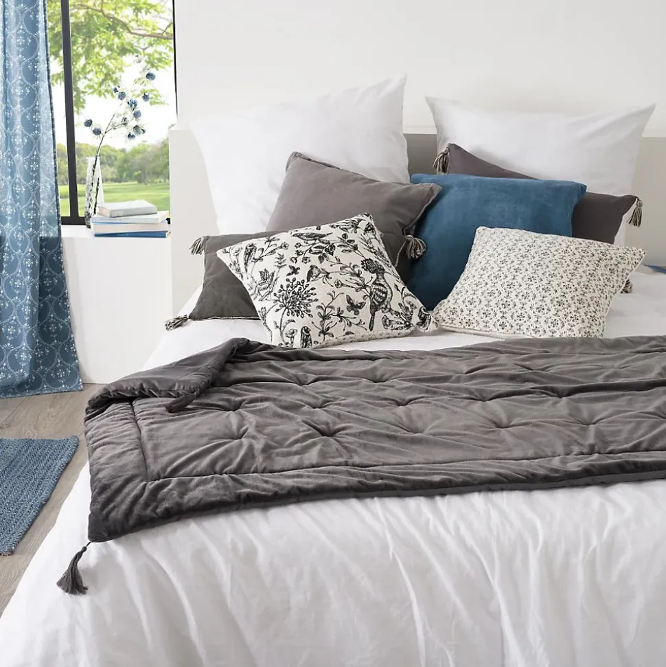 L’édredon « Sonia » Atmosphera sera le meilleur allié de vos soirées.Chaud et élégantTissu en velours et rembourrage en polyester pour conserver moelleux et légèreté, l’édredon « Sonia » peut être utilisé comme dessus de lit ou comme jeté de canapé pour donner un esprit chaleureux à votre intérieur. Ses pompons contrastants aux quatre coins ajoutent une pointe de chic et d’élégance.Le petit plus décoComplétez l’édredon « Sonia » par des coussins en velours Atmosphera disposés à proximité et assortis aux pompons de votre édredon.Produit labellisé OEKO-TEX