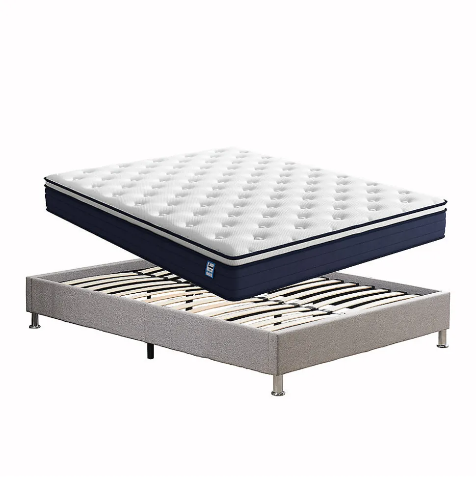 Dimensions du matelas et du cadre de lit:140 x 190 cm. Epaisseur du Matelas 25cm.Matelas livré roulé compressé.Aération par bandes 3D tout le tour du matelas. Il épouse les formes de votre corps et répartit de façon uniforme la pression pour vous faire profiter d’une grande sensation de confort, quelle que soit votre posture de sommeil.Certifications et Normes pour garantir la qualité du matelas et des matériaux utilisés dans sa fabrication, nous proposons un matelas certifié et réglementé dans les réglementations plus importantes de l’industrie textile, offrant qualité et sécurité: Certificat Oeko-tex textiles de confiance, Système de qualité, Certification ISO 9001.Si vous n’êtes pas satisfait pour une raison quelconque, n’hésitez pas à nous contacter pour un retour et un remboursement. Attendez 48 à 72h pour laisser reprendre sa forme d’origine.Caractéristiques du cadre de lit : durable et stableCouleur(teinte):GrisMatériau:BoisComposants inclus:pied de lit, lattesTaille:140x190cmNombre de lattes dans les lattes à plusieurs niveaux:28pcsMatériau des lattes:boisFinition du sommier:Lin de cotonAssemblage requis:OuiHauteur du sol au cadre de lit : 31cmDimensions de l’emballage : 150.5x22x34cmPoids de l’emballage : 25.8kgFermeté du matelas : moyennement soupleMatériau de rembourrage : ressortsHypoallergénique : OuiHauteur (cm) : 25Housse amovible : nonDuplex (été/hiver) : ouiPays de fabrication : ChineDimensions du matelas déplié : 140x190x25cmTaille de l’enveloppe du matelas : 148cmTaille de l’enveloppe du matelas : 28cmTaille de l’enveloppe du matelas : 28cmPoids de l’ensemble du matelas : 29 kgAvis:1.Veuillez prévoir 48 à 72 heures pour que le matelas reprenne sa forme d’origine.2.En raison de la grande taille du colis, nous l’envoyons séparément, il peut y avoir un écart dans l’heure d’arrivée, si