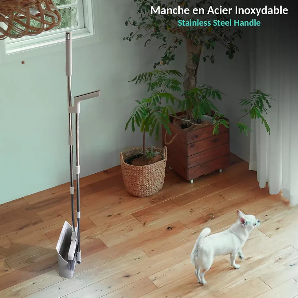 - Innovation : Pelle basculante avec peigne intégré pour retirer cheveux et poils sans contact manuel.