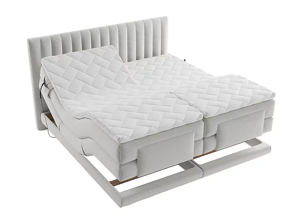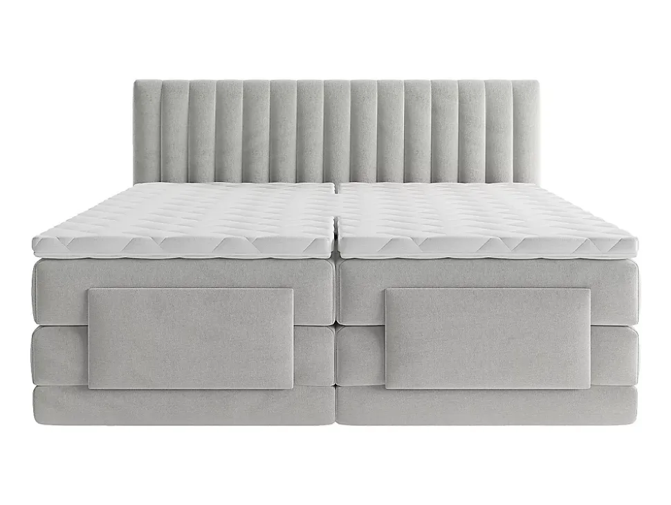 - Craquez pour le confort du boxspring électrique 2 x 90 x 200 cm king size Velours Gris clair – Tête de lit + sommier + matelas + surmatelas DONISI de Palacio. Essayez-le vite !