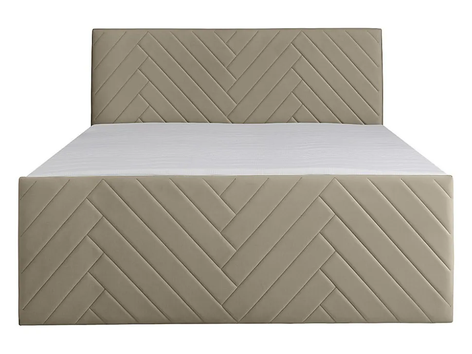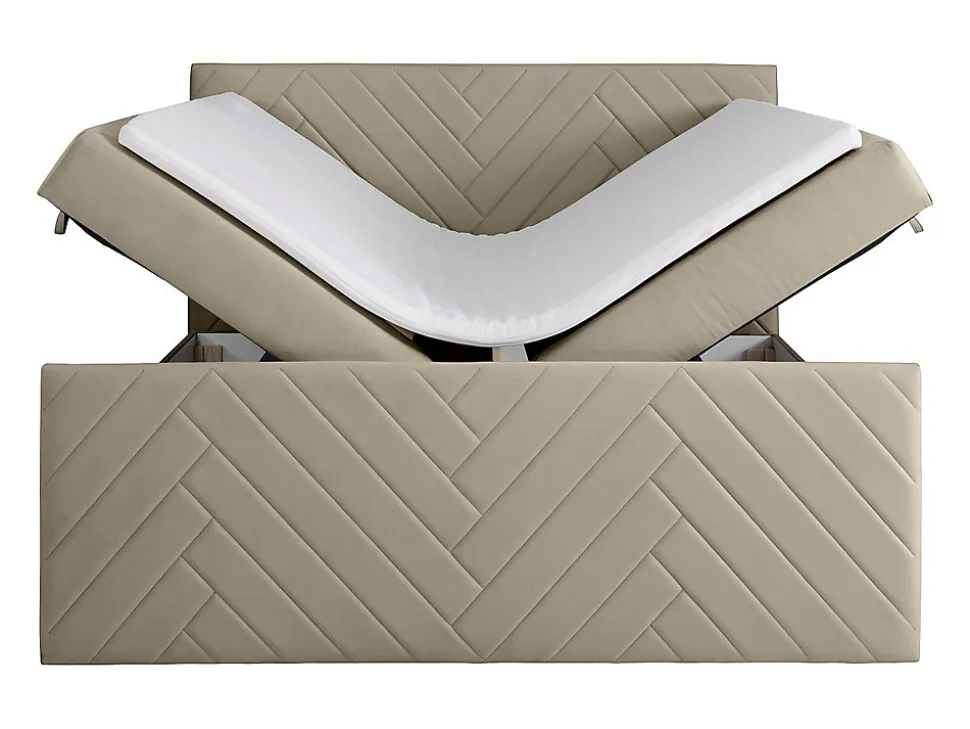 - Craquez pour le confort de l’ensemble literie déco coffre 160 x 200 cm queen size Velours Taupe – Tête de lit + sommier + matelas + surmatelas MAKANA de Ysmée. Essayez-le vite !