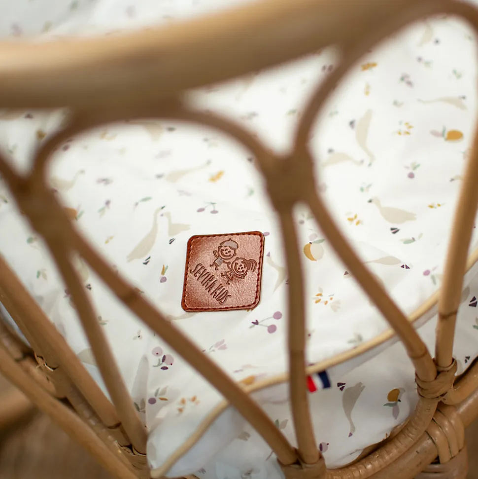 Préparez l’arrivée de bébé avec un ensemble de linge de lit doux et raffiné – Fabrication françaiseOffrez à votre bébé un cocon de douceur dès ses premiers jours avec cet ensemble couverture et coussin plat, conçu pour les couffins, berceaux et paniers Moïse. Issu de la Collection Sidonia de Sevira Kids, ce modèle réversible associe un coton imprimé au motif délicat de petites oies, baies et fleurs minimalistes à l’esprit champêtre d’un côté, et une gaze de coton unie de l’autre. Une combinaison parfaite pour allier élégance, douceur et respirabilité.Idéal pour compléter une liste de naissance ou offrir un cadeau de naissance unique, cet ensemble accompagnera bébé dans ses moments de repos tout en ajoutant une touche décorative raffinée à son espace. Son tissu certifié garantit une qualité irréprochable et respecte la peau sensible des nouveau-nés.Pourquoi choisir l’ensemble couverture et coussin Sidonia ?Réversible et délicat : Un côté en coton imprimé champêtre pour une touche élégante et poétique, et un côté en gaze de coton unie pour un confort ultra doux.Confort toute l’année : La couverture est légèrement ouatinée, idéale pour assurer chaleur et douceur à bébé quelle que soit la saison.Adapté aux petits couchages : Convient aux couffins, berceaux, paniers Moïse et landaus, offrant un sommeil paisible et sécurisé.Fabrication française : Conçu avec soin dans nos ateliers en France, avec des matières de haute qualité et un savoir-faire artisanal
