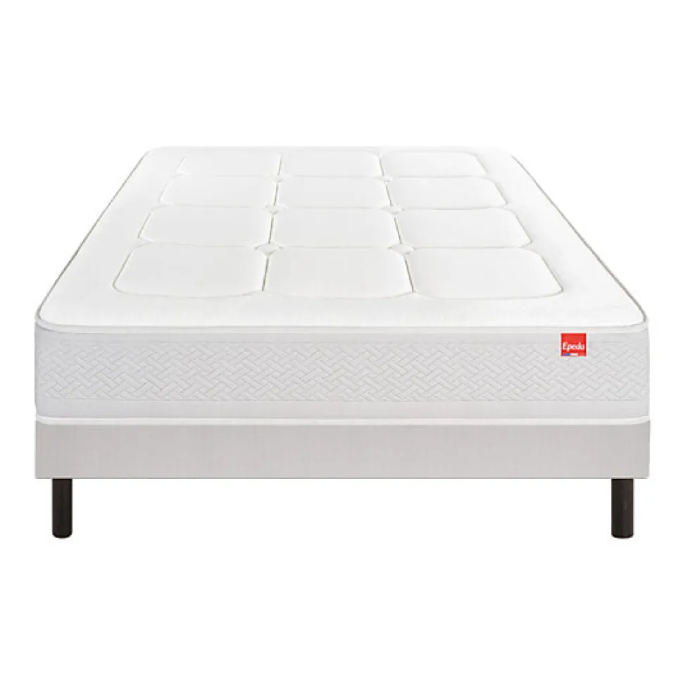 Matelas L’Inoubliable – Gamme Escale HôtelièreLe matelas en ressorts multi-actif possède 5 zones de confort avec la zone bassin renforcée pour un soutien morphologique. Le Multi Actif est une technologie hybride qui allie amortisseurs zonés et suspension ressorts. Elle permet d’absorber les vibrations liées aux mouvements des dormeurs, elle permet également de garantir l’indéformabilité du matelas dans le temps et garantit une aération optimale.Ses garnissages multi-matières en fibres Energic et mousse Ond’Air vous offre un accueil graduel et une sensation cocoonning tout au long de la nuit. Accueil : fermeSoutien : fermeHauteur : 29 cm Descriptif technique :- Ressorts multi-actif 5 zones- 2 faces de couchage : Face hiver : fibre Energic pour un accueil graduel, mousse Ond’Air pour cette sensation cocooning tout au long de la nuit et fibres hypoallergéniques Face été : mousse « soft », fibres Energic et fibres hypoallergéniques- Coutil stretch : Douceur et souplesse (100% polyester), sans traitement biocide pour respecter le corps du dormeur et l’environnement- Tissu bande gris souris- 4 poignées verticales : Facilité de manipulation Epeda note ce matelas : Accueil ferme, Soutien ferme Fabrication françaiseGarantie 5 ans ou 7 ans avec sommier de la marque Sommier Confort Medium Déco ÉpédaCe sommier Confort Medium Déco est composé de 2 x 18 lattes (en 140 par 190). Ce sont des lattes multiplis qui permettent un soutien morphologique du dormeur. Sa structure en bois massif lui confère une grande robustesse. Les lattes sont recouvertes d’un coutil antiacarien e