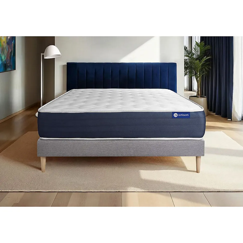 ACTISOM est une marque française développée en partenariat avec les plus grands experts européens du sommeil et de la literie. Après plusieurs années de recherche et de développement, nous avons mis au point des technologies innovantes (Actisoft – Actifresh – Acticell) afin de vous garantir d’excellentes nuits de sommeil. Tous nos matelas sont garantis 7ans et leur fabrication bénéficie d’un contrôle qualité très performant. Nos usines respectent les normes technologiques et environnementales européennes en vigueur.L’avis de notre expert: Grace aux 5 zones de confort, le latex et la mousse à mémoire de forme, le matelas Actilatex SLEEP épouse votre morphologie et soulage les points de pression. Doté de la technologie Actifresh, il beneficie d’une parfaite aération et évacue l’humidité pour un couchage sain. Il vous garantie un confort optimal pour une complète relaxation au fil des saisons grâce à ses 2 faces de couchages.Epaisseur 22 cmPlateau pour les 2 faces 3cm Latex + Mousse polyuréthane à mémoire de forme + mousse polyuréthane actiSoftBloc mousse polyuréthane haute densité 16cmCoutil 100% polyester micro-perforé ultra respirableConfort EquilibréType de sommier : Tapissier à lattes démontable à assembler soi mêmeÉpaisseur : 14 cmStructure et traverses de renfort en pin massif15 lattes multiplisGarnissage fibres 100% polyester 120G/M2Tissu maille 100% polyester 260G/M2Pieds : Bois 15cm fournisMontage facile : le montage pourra être effectué par une personne seule en seulement 10 minutes Epaisseur 22 cmPlateau pour les 2 faces 3cm Latex + Mousse polyuréthane à mémoire de forme + mousse polyuréthane actiSoftBloc mousse polyuréthane haute densité 16cmCoutil 100% polyester micro-perforé ultra respirableConfort EquilibréType de sommier : Tapissier à lattes démon
