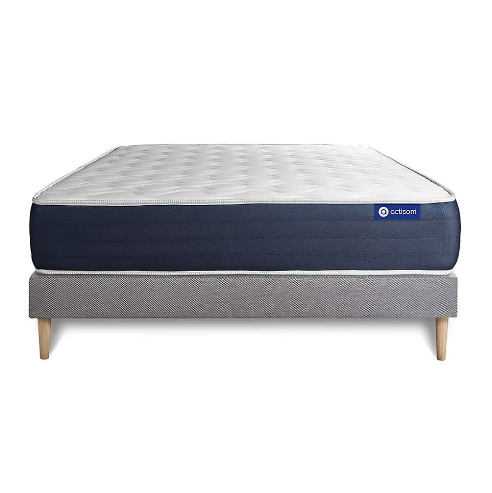 ACTISOM est une marque française développée en partenariat avec les plus grands experts européens du sommeil et de la literie. Après plusieurs années de recherche et de développement, nous avons mis au point des technologies innovantes (Actisoft – Actifresh – Acticell) afin de vous garantir d’excellentes nuits de sommeil. Tous nos matelas sont garantis 7ans et leur fabrication bénéficie d’un contrôle qualité très performant. Nos usines respectent les normes technologiques et environnementales européennes en vigueur.L’avis de notre expert: Grace aux 5 zones de confort, le latex et la mousse à mémoire de forme, le matelas Actilatex SLEEP épouse votre morphologie et soulage les points de pression. Doté de la technologie Actifresh, il beneficie d’une parfaite aération et évacue l’humidité pour un couchage sain. Il vous garantie un confort optimal pour une complète relaxation au fil des saisons grâce à ses 2 faces de couchages.Epaisseur 22 cmPlateau pour les 2 faces 3cm Latex + Mousse polyuréthane à mémoire de forme + mousse polyuréthane actiSoftBloc mousse polyuréthane haute densité 16cmCoutil 100% polyester micro-perforé ultra respirableConfort EquilibréType de sommier : Tapissier à lattes démontable à assembler soi mêmeÉpaisseur : 14 cmStructure et traverses de renfort en pin massif2x15 lattes multiplisGarnissage fibres 100% polyester 120G/M2Tissu maille 100% polyester 260G/M2Pieds : Bois 15cm fournisMontage facile : le montage pourra être effectué par une personne seule en seulement 10 minutes Epaisseur 22 cmPlateau pour les 2 faces 3cm Latex + Mousse polyuréthane à mémoire de forme + mousse polyuréthane actiSoftBloc mousse polyuréthane haute densité 16cmCoutil 100% polyester micro-perforé ultra respirableConfort EquilibréType de sommier : Tapissier à lattes dém