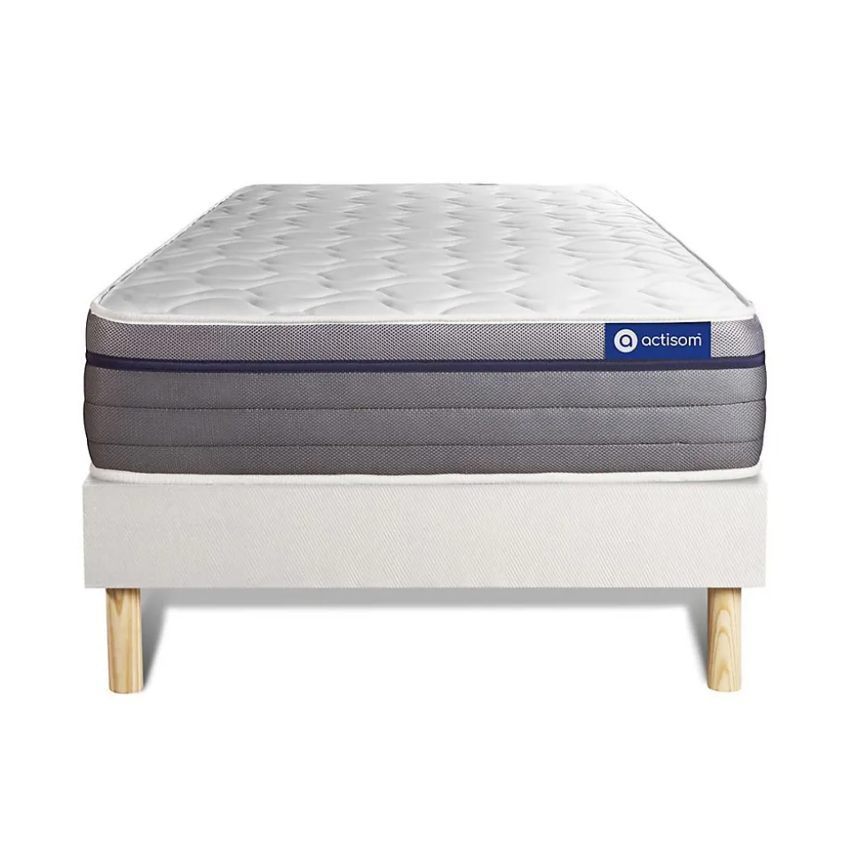 ACTISOM est une marque française développée en partenariat avec les plus grands experts européens du sommeil et de la literie. Après plusieurs années de recherche et de développement, nous avons mis au point des technologies innovantes (Actisoft – Actifresh – Acticell) afin de vous garantir d’excellentes nuits de sommeil. Tous nos matelas sont garantis 7ans et leur fabrication bénéficie d’un contrôle qualité très performant. Nos usines respectent les normes technologiques et environnementales européennes en vigueur.L’avis de notre expert: Le matelas Actilatex ZEN d’une épaisseur de 26cm est un matelas haut de gamme de la marque ACTISOM. Composé de 4 technologies innovantes que sont la mousse mémoire de forme, le latex, la mousse actiSoft et une mousse haute densité, ce matelas vous procure une incroyable sensation de bien-être et de repos. Idéal pour les personnes à la recherche d’une récupération optimale.• Epaisseur 26 cm• Plateau pour les 2 faces 3cm Latex + Mousse polyuréthane à mémoire de forme + mousse polyuréthane actiSoft• Bloc mousse polyuréthane haute densité 20cm• Coutil 100% polyester micro-perforé ultra respirable• Confort Equilibré • Type de sommier : Tapissier à lattes démontable à assembler soi même• Épaisseur : 14 cm• Structure et traverses de renfort en pin massif• 15 lattes multiplis• Garnissage fibres 100% polyester 120G/M2• Tissu maille 100% polyester 260G/M2• Pieds : Bois 15cm fournis• Montage facile : le montage pourra être effectué par une personne seule en seulement 10 minutes • Epaisseur 26 cm• Plateau pour les 2 faces 3cm Latex + Mousse polyuréthane à mémoire de forme + mousse polyuréthane actiSoft• Bloc mousse polyuréthane haute densité 20cm• Coutil 100% polyester micro-perforé ultra respirable• Confort Equilibré • Type de sommier : Tapissier à lattes démontable à assembler soi même• Épaisseur : 14 cm• Structure et trav