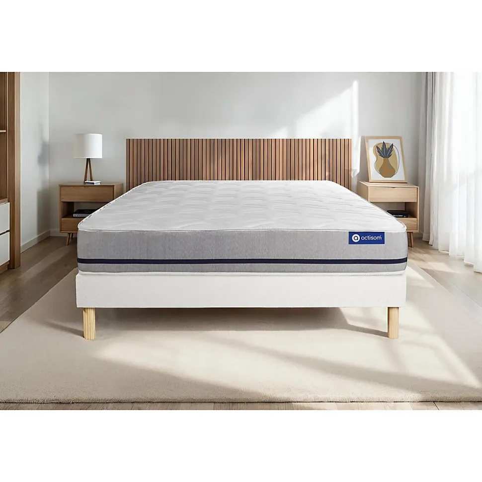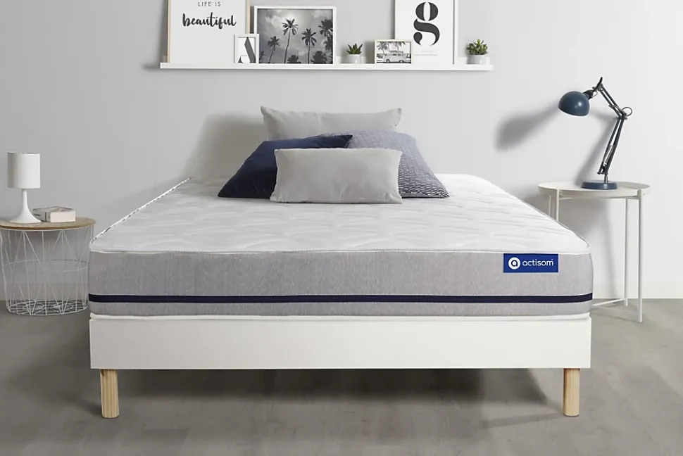 ACTISOM est une marque française développée en partenariat avec les plus grands experts européens du sommeil et de la literie. Après plusieurs années de recherche et de développement, nous avons mis au point des technologies innovantes (Actisoft – Actifresh – Acticell) afin de vous garantir d’excellentes nuits de sommeil. Tous nos matelas sont garantis 7ans et leur fabrication bénéficie d’un contrôle qualité très performant. Nos usines respectent les normes technologiques et environnementales européennes en vigueur.L’avis de notre expert: le matelas Actilatex SOFT bénéficie d’un confort mi-ferme. Il est composé de 3 technologies : Latex, mousse Actisoft et mousse à mémoire de forme qui épouse les formes naturelles du corps et contribue à soulager les points de pression. Cette association de technologies permet de bénéficier d’une parfaite indépendance de couchage. Elle vous assure donc une totale liberté de mouvement.• Epaisseur 20 cm• Plateau pour les 2 faces 3cm Latex + Mousse polyuréthane à mémoire de forme + mousse polyuréthane actiSoft• Bloc mousse polyuréthane haute densité 14cm• Coutil 100% polyester micro-perforé ultra respirable• Confort MI-Ferme • Type de sommier : Tapissier à lattes démontable à assembler soi même• Épaisseur : 14 cm• Structure et traverses de renfort en pin massif• 2×15 lattes multiplis• Garnissage fibres 100% polyester 120G/M2• Tissu maille 100% polyester 260G/M2• Pieds : Bois 15cm fournis• Montage facile : le montage pourra être effectué par une personne seule en seulement 10 minutes • Epaisseur 20 cm• Plateau pour les 2 faces 3cm Latex + Mousse polyuréthane à mémoire de forme + mousse polyuréthane actiSoft• Bloc mousse polyuréthane haute densité 14cm• Coutil 100% polyester micro-perforé ultra respirable• Confort MI-Ferme • Type de sommier : Tapissier à lattes démontable à assembler soi même• Épaisseur : 14 cm• Structu