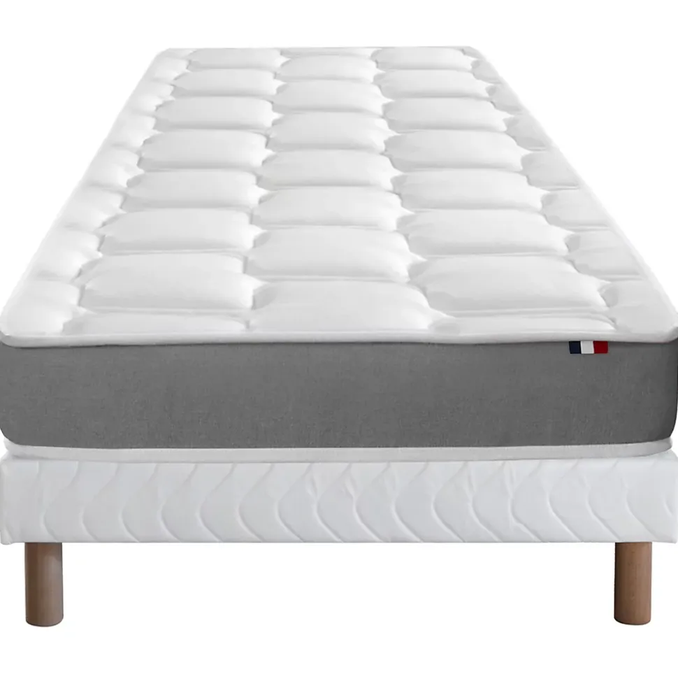 Ensemble matelas mémoire forme sommier blanc 90×190