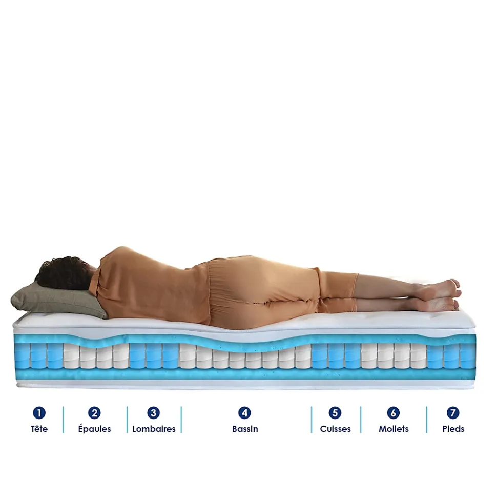 Ensemble matelas ressorts 7 zones PALACIO + sommier en kit beige lattes flexibles 140×200