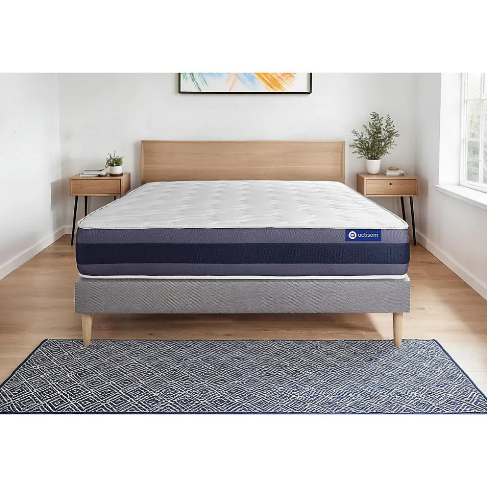 ACTISOM est une marque française développée en partenariat avec les plus grands experts européens du sommeil et de la literie. Après plusieurs années de recherche et de développement, nous avons mis au point des technologies innovantes (Actisoft – Actifresh – Acticell) afin de vous garantir d’excellentes nuits de sommeil. Tous nos matelas sont garantis 7ans et leur fabrication bénéficie d’un contrôle qualité très performant. Nos usines respectent les normes technologiques et environnementales européennes en vigueur.L’avis de notre expert: Le matelas Actimemo MORPHO est un matelas haut de gamme de la marque ACTISOM. Il dispose d’une maxi épaisseur de 24cm. Conçu à base de mousse à mémoire de forme, sur les deux faces été/hiver, il allège les points de pressions. Doté d’une mousse ActiSoft, il procure un acueil particulièrement confortable. L’excellente indépendance de couchage assure un sommel réparateur à toute épreuve.Epaisseur 24 cmPlateau pour les 2 faces 2,5cm Mousse polyuréthane à mémoire de forme + mousse polyuréthane actiSoftSoutien en mousse polyuréthane haute densité 19cmCoutil 100% polyester micro-perforé ultra respirableConfort EquilibréType de sommier : Tapissier à lattes démontable à assembler soi mêmeÉpaisseur : 14 cmStructure et traverses de renfort en pin massif15 lattes multiplisGarnissage fibres 100% polyester 120G/M2Tissu maille 100% polyester 260G/M2Pieds : Bois 15cm fournisMontage facile : le montage pourra être effectué par une personne seule en seulement 10 minutes Epaisseur 24 cmPlateau pour les 2 faces 2,5cm Mousse polyuréthane à mémoire de forme + mousse polyuréthane actiSoftSoutien en mousse polyuréthane haute densité 19cmCoutil 100% polyester micro-perforé ultra respirableConfort EquilibréType de sommier : Tapissier à lattes démontab