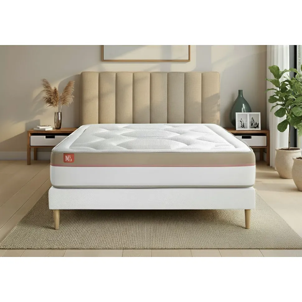 À toi qui peux dormir douze heures d’affilée sans jamais te réveiller… À toi qui troques régulièrement ton café contre quelques précieuses minutes de gagnées… À toi, l’oiseau de nuit, qui retrouves au petit matin ton lit chéri… chez Marmottes & Co, nous avons le nid douillet qu’il te faut. Nous avons developpé une gamme de produits couvrant toutes les sensations de confort recherchées grace à des technologies éprouvées associées à des matières naturelles. Tous nos matelas, sommiers et accessoires sont fabriqués au Portugal, dans la région du Val d’Ave, région reconnue pour son savoir-faire textile transmis de générations en générations. Nous travaillons en étroite collaboration avec nos fournisseurs à chaque étape, de la conception à la fabrication de nos produits, afin qu’ils soient conformes à nos exigences et qu’ils comblent vos attentes. Tous nos produits sont conçus, contrôlés, testés avec la plus grande rigueur. Ils portent le label Oeko-Tex qui garantit l’absence de substances nocives pour la peau.Quoi de plus COSY qu’une maxi épaisseur de mousse à mémoire de forme ? Le matelas COSY de Marmottes&Co, c’est l’harmonie parfaite entre la douceur de cet accueil enveloppant qui épouse vos formes, et le soutien ferme qui soulage les points de pression du corps. Et pour ne rien gâcher de ce plaisir, son coutil en TENCEL issu du bois d’eucalyptus est absorbant et ultra-respirant.> Epaisseur 30 cm > Soutien ferme composé d’une âme en mousse polyuréthane Haute Densité de 15 cm > Accueil : Enveloppant avec 6 cm de mousse polyuréthane à mémoire de forme + mousse polyuréthane Haute Densité > Fibre 100% polyester 350G/m2> Plate-Bande 3D micro-aérée pour optimiser l’aération du matelas 100% polyester> Coutil fibre naturelle ultra respirable et absorbant 35% TENCEL et 65% polyester > Confort ferme > 7 zones de confort > Certifications : Oeko-Tex Standard 100, TENCEL> Sommier tapissier> > Epaisseur 30 cm