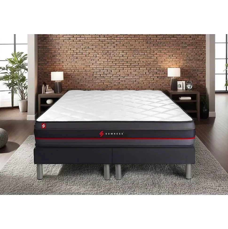 L’un des meilleurs modèles de la marque SOMNESS. L’alliance parfaite d’un accueil à mémoire de forme avec un soutien haute densité 5 zones de confort. Il dispose d’une maxi épaisseur de 24cm et est doté de la technologie Freshair qui permet une aération optimale. Le matelas REGEN est le matelas idéal.- Type de matelas : Mémoire de forme- Epaisseur : 24 cm- Confort : ferme- Accueil : Enveloppant avec 2,5 cm de mousse polyuréthane à mémoire de forme + soft- Soutien : 16cm de mousse polyuréthane- Indépendance de couchage : Excellente- Coutil 100% polyester microperforé ultra-respirable- Plate-Bande en tissu 3D micro-perforé 100% Polyester pour optimiser l’aération du matelas- Face de couchage : Réversible- Densité : 55 kg/m3- Certification : Oeko-Tex- Sommier tapissier- Multi 12 lattes en peuplier massif- Structure et traverses de renfort en peuplier massif- Garnissage fibres 100% polyester 120G/M2- Tissu Maille 100% polyester 260G/M2- Toile de fond anti-poussières 100% polyester- Hauteur 14cm + Pieds acier 15cm – Type de matelas : Mémoire de forme- Epaisseur : 24 cm- Confort : ferme- Accueil : Enveloppant avec 2,5 cm de mousse polyuréthane à mémoire de forme + soft- Soutien : 16cm de mousse polyuréthane- Indépendance de couchage : Excellente- Coutil 100% polyester microperforé ultra-respirable- Plate-Bande en tissu 3D micro-perforé 100% Polyester pour optimiser l’aération du matelas- Face de couchage : Réversible- Densité : 55 kg/m3- Certification : Oeko-Tex- Sommier tapissier- Multi 12 lattes en peuplier massif- Structure et traverses de renfort en peuplier massif- Garnissage fibres 100% polyester 120G/M2- Tissu Maille 100% polyester 260G/M2- Toile de fond anti-poussières 100% polyester- Hauteur 14cm + Pieds acier 15cm