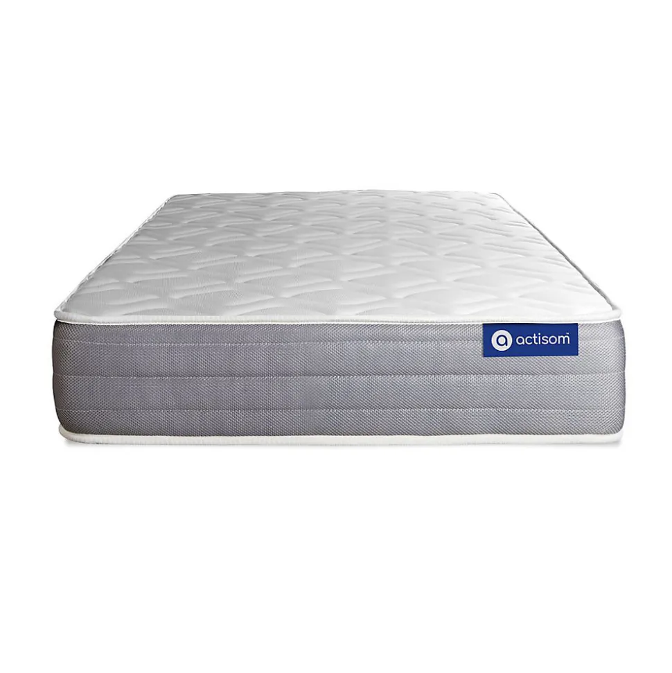 ACTISOM est une marque française développée en partenariat avec les plus grands experts européens du sommeil et de la literie. Après plusieurs années de recherche et de développement, nous avons mis au point des technologies innovantes (Actisoft – Actifresh – Acticell) afin de vous garantir d’excellentes nuits de sommeil. Tous nos matelas sont garantis 7ans et leur fabrication bénéficie d’un contrôle qualité très performant. Nos usines respectent les normes technologiques et environnementales européennes en vigueur.L’avis de notre expert: Grace aux 5 zones de confort et la mousse à mémoire de forme, le matelas Actimemo DREAM épouse les formes de votre corps et soulage les points de pression. Les articulations sont soulagées et peuvent se reposer, tout comme la colonne vertébrale, dont l’alignement est préservé. La technologie Actifresh permet une parfaite aération pour un couchage sain hiver comme été.Epaisseur 22 cmPlateau pour les 2 faces 2,5cm Mousse polyuréthane à mémoire de forme + mousse polyuréthane actiSoftSoutien en mousse polyuréthane haute densité 17cmCoutil 100% polyester micro-perforé ultra respirableConfort Mi-fermeType de sommier : Tapissier à lattes démontable à assembler soi mêmeÉpaisseur :14 cmStructure et traverses de renfort en pin massif15 lattes multiplisGarnissage fibres 100% polyester 120G/M2Tissu maille 100% polyester 260G/M2Pieds : Bois 15cm fournisMontage facile : le montage pourra être effectué par une personne seule en seulement 10 minutes Epaisseur 22 cmPlateau pour les 2 faces 2,5cm Mousse polyuréthane à mémoire de forme + mousse polyuréthane actiSoftSoutien en mousse polyuréthane haute densité 17cmCoutil 100% polyester micro-perforé ultra respirableConfort Mi-fermeType de sommier : Tapissier à lattes démontable à assembler soi même<l