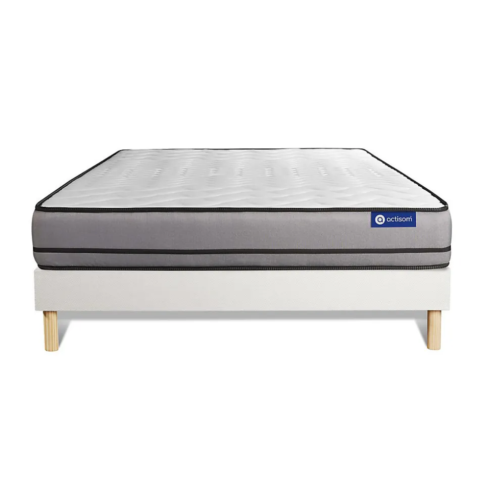 ACTISOM est une marque française développée en partenariat avec les plus grands experts européens du sommeil et de la literie. Après plusieurs années de recherche et de développement, nous avons mis au point des technologies innovantes (Actisoft – Actifresh – Acticell) afin de vous garantir d’excellentes nuits de sommeil. Tous nos matelas sont garantis 7ans et leur fabrication bénéficie d’un contrôle qualité très performant. Nos usines respectent les normes technologiques et environnementales européennes en vigueur.Le modèle Actimemo NIGHT de la marque ACTISOM est doté de mousse à mémoire de forme sur les deux faces. Vos points de pressions sensibles sont réduits, votre positition de couchage est confortable en maximisant votre relaxation. Son ame haute densité vous apporte un soutien très ferme. Avec sa technologie Actifresh votre corps se régénère naturellement grâce à la thermorégulation des matières de garnissages.Epaisseur 20 cmPlateau pour les 2 faces 2,5cm Mousse polyuréthane à mémoire de forme + mousse polyuréthane actiSoftSoutien en mousse polyuréthane haute densité 15cmCoutil 100% polyester micro-perforé ultra respirableConfort Très FermeType de sommier : Tapissier à lattes démontable à assembler soi mêmeÉpaisseur :14 cmStructure et traverses de renfort en pin massif15 lattes multiplisGarnissage fibres 100% polyester 120G/M2Tissu maille 100% polyester 260G/M2Pieds : Bois 15cm fournisMontage facile : le montage pourra être effectué par une personne seule en seulement 10 minutes Epaisseur 20 cmPlateau pour les 2 faces 2,5cm Mousse polyuréthane à mémoire de forme + mousse polyuréthane actiSoftSoutien en mousse polyuréthane haute densité 15cmCoutil 100% polyester micro-perforé ultra respirableConfort Très FermeType de sommier : Tapissier à lattes démontable à asse