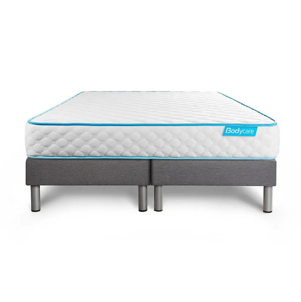 BODYCARE est née de la conviction qu’il n’existe pas de différence entre le corps d’un sportif de haut niveau et celui d’un sportif du quotidien. Pour ces sportifs de haut niveau, comme pour vous, le sommeil est une phase prépondérante dans le processus de récupération physique, nerveuse et psychologique. Nos produits sont conçus en collaboration étroite avec des sportifs. Les matelas BODYCARE allient confort, maintien et souplesse afin de permettre à votre corps de se revitaliser pour récupérer du stress de la journée.Le matelas BODYONE de la marque BODYCARE est d’une tenue très ferme, son accueil dynamique allège les points de pression. Sa plate‐Bande 3D micro aérée, associée à son coutil micro perforé ultra respirable vous garantissent une aération optimisée du matelas.- Épaisseur : 19 cm- Âme 100% mousse polyuréthane Haute Densité 14 cm- Garnissage fibres polyester 350G/M2- Plate-Bande 100% polyester micro-aérée pour optimiser l’aération du matelas- Coutil 100% polyester micro perforé ultra respirable – Confort : Accueil Dynamique – Soutien ferme- Sommier tapissier- Multi 2×12 lattes en peuplier massif- Structure et traverses de renfort en peuplier massif- Garnissage fibres 100% polyester 120G/M2- Tissu Maille 100% polyester 260G/M2- Toile de fond anti-poussières 100% polyester- Hauteur 14cm + Pieds acier 15cm (fournis) – Épaisseur : 19 cm- Âme 100% mousse polyuréthane Haute Densité 14 cm- Garnissage fibres polyester 350G/M2- Plate-Bande 100% polyester micro-aérée pour optimiser l’aération du matelas- Coutil 100% polyester micro perforé ultra respirable – Confort : Accueil Dynamique – Soutien ferme- Sommier tapissier- Multi 2×12 lattes en peuplier massif- Structure et traverses de renfort en peuplier massif- Garnissage fibres 100% polyester 120G/M2- Tissu Maille 100% polyester 260G/M2- Toile de fond anti-poussières 100% pol