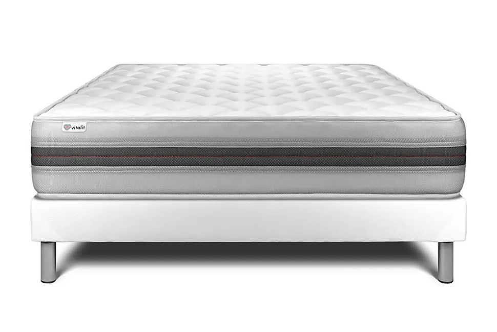 Faites le plein d’énergie positive grâce aux solutions de literie énergisantes Vitalit qui allient confort, maintien et souplesse et permettre à votre corps de prendre le temps de se revitaliser. Les matelas et sommiers Vitalit sont pensés pour s’adapter aux spécificités corporelles et au sommeil de chacun. De fabrication portugaise, les produits Vitalit sont rigoureusement élaborés selon des cahiers des charges précis. Jusqu’à la livraison, notre objectif : votre satisfaction.D’une épaisseur de 26 cm, le VITALMEMO BACK bénéficie des dernières innovations en matière de mousse à mémoire de forme. Son soutien ferme et son accueil moelleux s’adapte à votre morphologie, allège les points de pression et prévient les maux de dos. Son tissu micro perforé garantie une aération optimisée. Commencer votre journée avec énergie et vitalité avec notre matelas VITALMEMO BACK.Epaisseur 26 cmÂme 100% mousse polyuréthane Haute Densité 20 cmMousse polyuréthane à mémoire de forme D 55 kg + Mousse polyuréthane Soft HDFibres 100% Polyester 350G/M2Plate-Bande 3D micro-aérée 100% Polyester pour optimiser l’aération du matelasCoutil micro perforé ultra respirable 100% PolyesterConfort : ÉquilibréAccueil moelleuxSoutien fermeSommierSommier Tapissier à lattes en kit à assembler soi mêmeNombre de lattes : 2 x 16 lattes multiplisStructure et traverses de renfort en pin massifTissu Maille 100% polyester 260 G/M2 respirableHauteur 14cm + Pieds acier 15cm (fournis)Adapté pour tous types de matelasMontage facile par une personne seule en moins de 15 min Epaisseur 26 cmÂme 100% mousse polyuréthane Haute Densité 20 cmMousse polyuréthane à mémoire de forme D 55 kg + Mousse polyuréthane Soft HDFibres 100% Polyester 350G/M2Plate-Bande 3D micro-aérée 100% Polyester pour optimiser l’aération