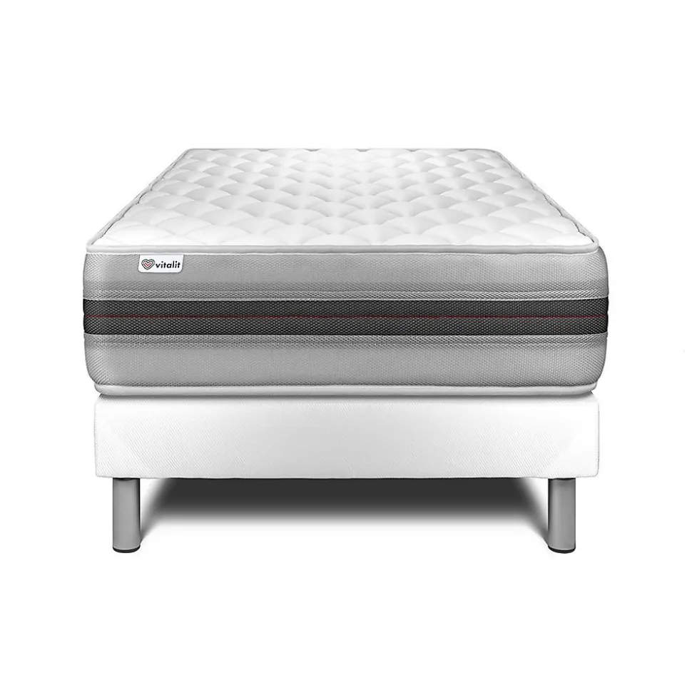 Faites le plein d’énergie positive grâce aux solutions de literie énergisantes Vitalit qui allient confort, maintien et souplesse et permettre à votre corps de prendre le temps de se revitaliser. Les matelas et sommiers Vitalit sont pensés pour s’adapter aux spécificités corporelles et au sommeil de chacun. De fabrication portugaise, les produits Vitalit sont rigoureusement élaborés selon des cahiers des charges précis. Jusqu’à la livraison, notre objectif : votre satisfaction.D’une épaisseur de 26 cm, le VITALMEMO BACK bénéficie des dernières innovations en matière de mousse à mémoire de forme. Son soutien ferme et son accueil moelleux s’adapte à votre morphologie, allège les points de pression et prévient les maux de dos. Son tissu micro perforé garantie une aération optimisée. Commencer votre journée avec énergie et vitalité avec notre matelas VITALMEMO BACK.Epaisseur 26 cmÂme 100% mousse polyuréthane Haute Densité 20 cmMousse polyuréthane à mémoire de forme D 55 kg + Mousse polyuréthane Soft HDFibres 100% Polyester 350G/M2Plate-Bande 3D micro-aérée 100% Polyester pour optimiser l’aération du matelasCoutil micro perforé ultra respirable 100% PolyesterConfort : ÉquilibréAccueil moelleuxSoutien fermeSommier Tapissier à lattes en kit à assembler soi mêmeNombre de lattes : 2 x 15 lattes multiplisStructure et traverses de renfort en pin massifTissu Maille 100% polyester 260 G/M2 respirableHauteur 14cm + Pieds acier 15cm (fournis)Adapté pour tous types de matelasMontage facile par une personne seule en moins de 15 minSommierSommier Tapissier à lattes en kit à assembler soi mêmeNombre de lattes : 15 lattes multiplisStructure et traverses de renfort en pin massifTissu Maille 100% polyester 260 G/M2 respirableHauteur 14cm + Pieds acier 15cm (fournis)Adapté <