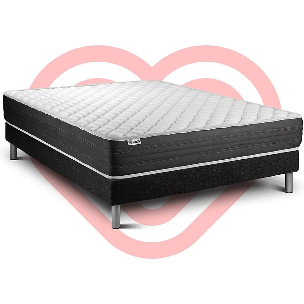 Faites le plein d’énergie positive grâce aux solutions de literie énergisantes Vitalit qui allient confort, maintien et souplesse et permettre à votre corps de prendre le temps de se revitaliser. Les matelas et sommiers Vitalit sont pensés pour s’adapter aux spécificités corporelles et au sommeil de chacun. De fabrication portugaise, les produits Vitalit sont rigoureusement élaborés selon des cahiers des charges précis. Jusqu’à la livraison, notre objectif : votre satisfaction.D’une épaisseur de 24 cm, le matelas VITALMEMO ONE incarne les dernières avancées technologiques dans le domaine de la mousse à mémoire de forme qui vous enveloppe avec douceur. D’un soutien ferme grâce à son âme en mousse polyuréthane Soft HD, ce matelas s’adapte parfaitement à votre morphologie, soulageant ainsi les points de pression. Son tissu micro perforé assure une circulation d’air optimale. Réveillez-vous frais et revitalisé avec le matelas VITALMEME ONE.Épaisseur : 24 cmÂme 100% mousse polyuréthane Haute Densité 15 cmMousse polyuréthane à mémoire de forme D 55 kg + Mousse polyuréthane Soft HDMousse Polyuréthane Hypersoft ultraconfortFibres 100% Polyester 350G/M2Plate-Bande 3D micro-aérée 100% Polyester pour optimiser l’aération du matelasCoutil micro perforé ultra respirable 100% PolyesterConfort : FermeAccueil : EnveloppantSoutien : FermeSommierSommier Tapissier à lattes en kit à assembler soi mêmeNombre de lattes : 2 x 16 lattes multiplisStructure et traverses de renfort en pin massifTissu Maille 100% polyester 855G/M2 respirable et résistant certifié OEKO-TEX Standard 100Hauteur 14cm + Pieds acier 15cm (fournis)Adapté pour tous types de matelasMontage facile par une personne seule en moins de 15 min Épaisseur : 24 cmÂme 100% mousse polyuréthane Haute Densité
