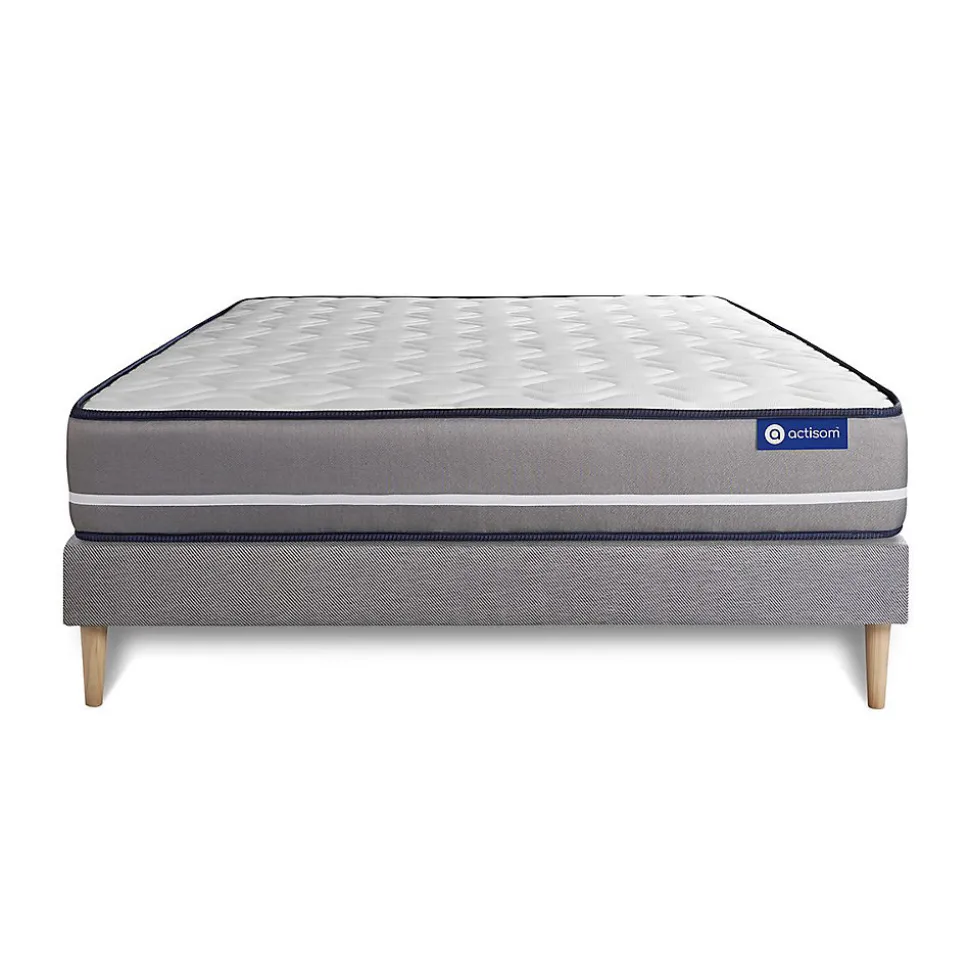 ACTISOM est une marque française développée en partenariat avec les plus grands experts européens du sommeil et de la literie. Après plusieurs années de recherche et de développement, nous avons mis au point des technologies innovantes (Actisoft – Actifresh – Acticell) afin de vous garantir d’excellentes nuits de sommeil. Tous nos matelas sont garantis 7ans et leur fabrication bénéficie d’un contrôle qualité très performant. Nos usines respectent les normes technologiques et environnementales européennes en vigueur.Actisom vous propose le matelas Actiflex PUR aux propriétés exceptionnelles, au confort unique et durable. Doté de la technologie Actisoft il procure un accueil particulièrement confortable. La technologie ressorts ensachés permet une parfaite ventilation du matelas et un soutien précis point par point de votre corps. Vos cycles de sommeil sont améliorés et vos douleurs dorsales sont soulagées.Epaisseur 20 cmPlateau mousse polyuréthane actiSoft pour les 2 facesAme 744 ressorts ensachés ferme 15cmCoutil 100% polyester micro-perforé ultra respirableConfort FermeType de sommier : Tapissier à lattes démontable à assembler soi mêmeÉpaisseur : 14 cmStructure et traverses de renfort en pin massif2x15 lattes multiplisGarnissage fibres 100% polyester 120G/M2Tissu maille 100% polyester 260G/M2Pieds : Bois 15cm fournisMontage facile : le montage pourra être effectué par une personne seule en seulement 10 minutes Epaisseur 20 cmPlateau mousse polyuréthane actiSoft pour les 2 facesAme 744 ressorts ensachés ferme 15cmCoutil 100% polyester micro-perforé ultra respirableConfort FermeType de sommier : Tapissier à lattes démontable à assembler soi mêmeÉpaisseur : 14 cmStructure et traverses de renfort en pin massif2x15 lattes multiplis<