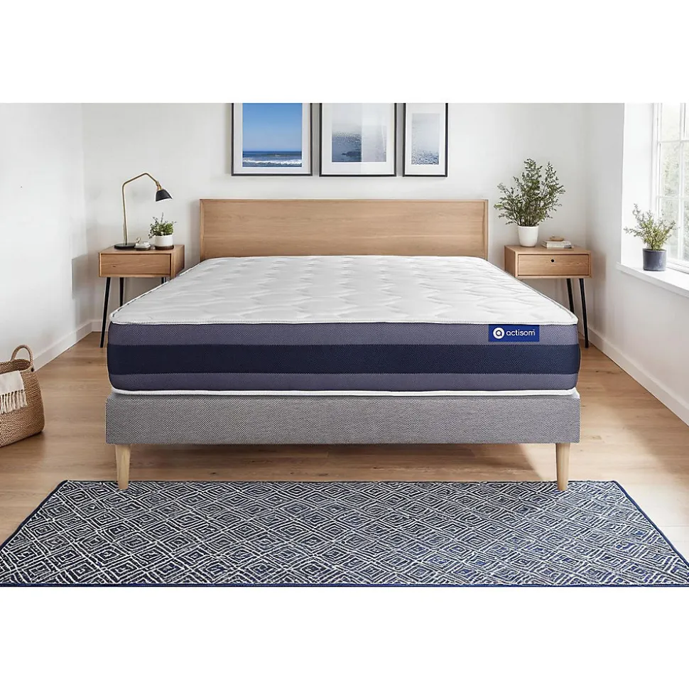 ACTISOM est une marque française développée en partenariat avec les plus grands experts européens du sommeil et de la literie. Après plusieurs années de recherche et de développement, nous avons mis au point des technologies innovantes (Actisoft – Actifresh – Acticell) afin de vous garantir d’excellentes nuits de sommeil. Tous nos matelas sont garantis 7ans et leur fabrication bénéficie d’un contrôle qualité très performant. Nos usines respectent les normes technologiques et environnementales européennes en vigueur.L’avis de notre expert: La combinaison parfaite entre un accueil à base de mousse à mémoire de forme et un souitien en ressorts ensachés. Le matelas Actiflex MORPHO procure un accueil morphologique qui épouse la forme de votre corps et allége les points de pression. L’aération parfaite de ce matelas est notamment dûe à son soutien en ressorts ensachés et permet une régulation parfaite de la température ressentie.Epaisseur 24 cmPlateau pour les 2 faces 4cm Mousse polyuréthane à mémoire de forme + mousse polyuréthane actiSoftAme 290 ressorts ensachés ferme 18cmCoutil 100% polyester micro-perforé ultra respirableConfort EquilibréType de sommier : Tapissier à lattes démontable à assembler soi mêmeÉpaisseur :14 cmStructure et traverses de renfort en pin massif15 lattes multiplisGarnissage fibres 100% polyester 120G/M2Tissu maille 100% polyester 260G/M2Pieds : Bois 15cm fournisMontage facile : le montage pourra être effectué par une personne seule en seulement 10 minutes Epaisseur 24 cmPlateau pour les 2 faces 4cm Mousse polyuréthane à mémoire de forme + mousse polyuréthane actiSoftAme 290 ressorts ensachés ferme 18cmCoutil 100% polyester micro-perforé ultra respirableConfort EquilibréType de sommier : Tapissier à lattes démontable à assembler soi mêmeÉpai