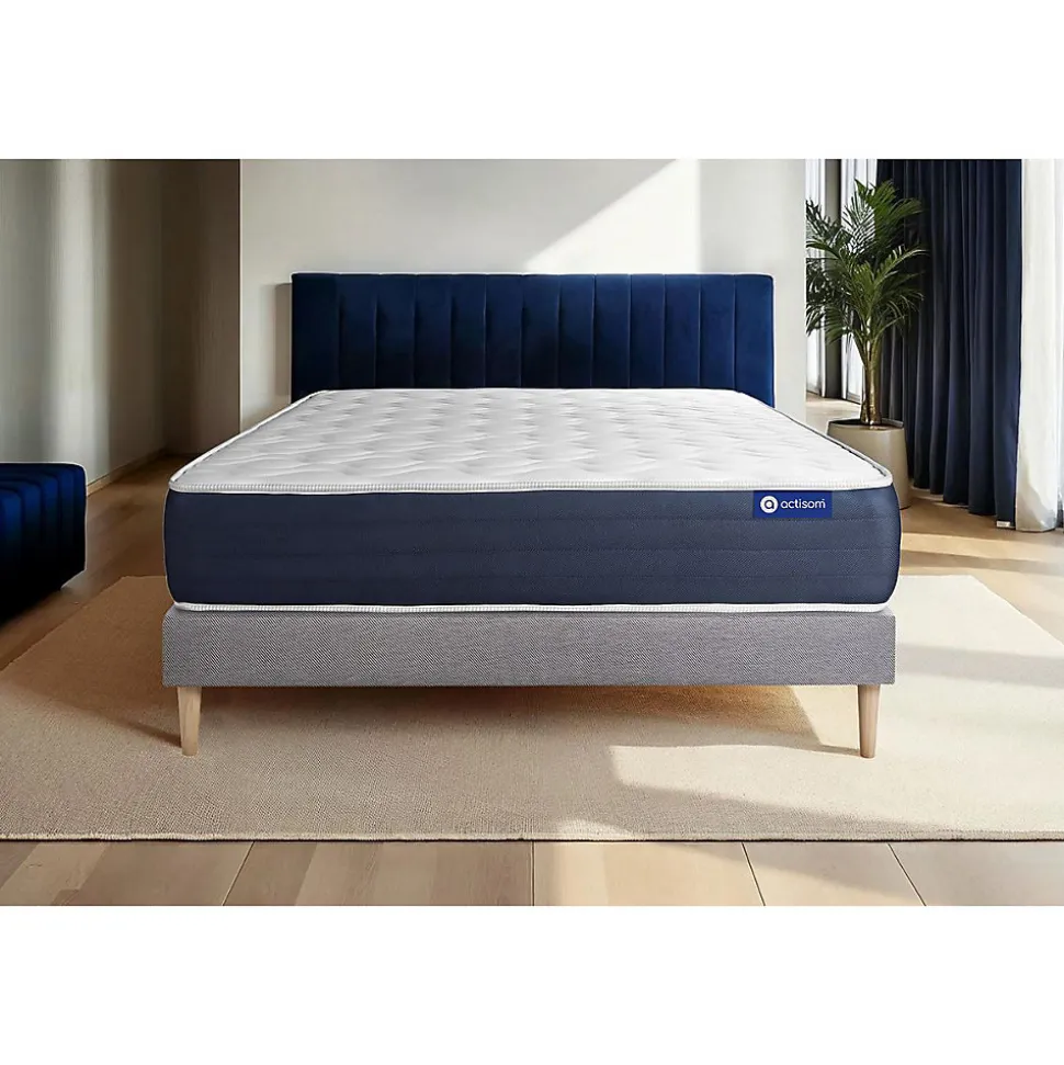 ACTISOM est une marque française développée en partenariat avec les plus grands experts européens du sommeil et de la literie. Après plusieurs années de recherche et de développement, nous avons mis au point des technologies innovantes (Actisoft – Actifresh – Acticell) afin de vous garantir d’excellentes nuits de sommeil. Tous nos matelas sont garantis 7ans et leur fabrication bénéficie d’un contrôle qualité très performant. Nos usines respectent les normes technologiques et environnementales européennes en vigueur.L’avis de notre expert : Le matelas Actiflex SLEEP dispose de mousse à mémoire de forme sur les deux faces été et hiver. Elle permet de alléger les points de pression et d’apporter un confort exceptionnel en accueil. Son ame en ressorts ensachés vous procure un soutien précis de votre corps. Vos points de pression disparraissent pour offrir à votre morpholgie une récupération optimale pour un sommeil récupérateur.Epaisseur 22 cmPlateau pour les 2 faces 4cm Mousse polyuréthane à mémoire de forme + mousse polyuréthane actiSoftAme 609 ressorts ensachés ferme 15cmCoutil 100% polyester micro-perforé ultra respirableConfort EquilibréType de sommier : Tapissier à lattes démontable à assembler soi mêmeÉpaisseur : 14 cmStructure et traverses de renfort en pin massif2x15 lattes multiplisGarnissage fibres 100% polyester 120G/M2Tissu maille 100% polyester 260G/M2Pieds : Bois 15cm fournisMontage facile : le montage pourra être effectué par une personne seule en seulement 10 minutes Epaisseur 22 cmPlateau pour les 2 faces 4cm Mousse polyuréthane à mémoire de forme + mousse polyuréthane actiSoftAme 609 ressorts ensachés ferme 15cmCoutil 100% polyester micro-perforé ultra respirableConfort EquilibréType de sommier : Tapissier à lattes démontable à assembler soi même