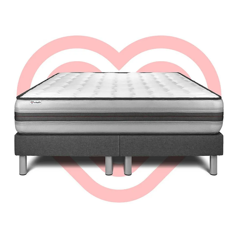 Faites le plein d’énergie positive grâce aux solutions de literie énergisantes Vitalit qui allient confort, maintien et souplesse et permettre à votre corps de prendre le temps de se revitaliser. Les matelas et sommiers Vitalit sont pensés pour s’adapter aux spécificités corporelles et au sommeil de chacun. De fabrication portugaise, les produits Vitalit sont rigoureusement élaborés selon des cahiers des charges précis. Jusqu’à la livraison, notre objectif : votre satisfaction.Avec ses 26 cm d’épaisseur, le matelas hybride haut de gamme VITALPOWER RECOVER bénéficie de l’alliance technologique des ressorts ensachés et mousse à mémoire de forme. D’un soutien ferme, son accueil enveloppant s’adapte à votre morphologie et allège les points de pression. Son coutil micro perforé garantie une aération optimisée. Recharger vos batteries durant votre sommeil avec le matelas VITALPOWER RECOVER.Type de matelas : Mémoire de forme et ressorts ensachésEpaisseur : 26 cmMicro perforé ultra-respirableCarénage mousse polyuréthane 30kgMousse polyuréthane à mémoire de forme D 55 kg + Mousse polyuréthane Soft HDFibres 100% Polyester 350G/M2Nombre de ressorts ensachés : 744 pour le 160x200cmPlate-Bande 3D micro-aérée 100% Polyester pour optimiser l’aération du matelasCoutil micro perforé ultra respirable 100% PolyesterConfort : Equilibré – Accueil moelleux – Soutien fermeFace de couchage : Face été / Face hiverDensité : 55 kg/m3Certification : Oeko-TexSommier tapissierMulti 2 x 12 lattes en peuplier massifStructure et traverses de renfort en peuplier massifGarnissage fibres 100% polyester 120G/M2Tissu Maille 100% polyester 345G/M2 respirable et résistant certifié OEKO-TEX Standard 100Toile de fond 100% polyester anti-poussièresHauteur 14cm + Pieds acier 15cm (fournis)Adapté pour tous typ