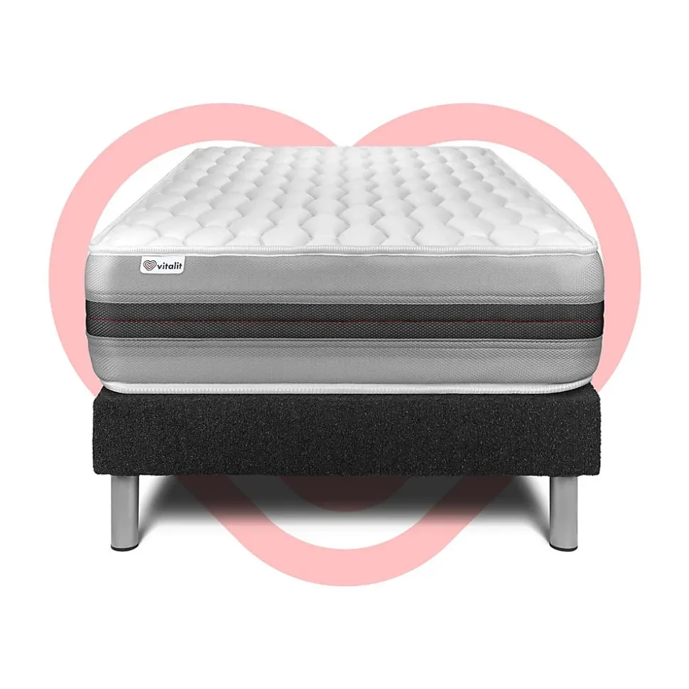 Faites le plein d’énergie positive grâce aux solutions de literie énergisantes Vitalit qui allient confort, maintien et souplesse et permettre à votre corps de prendre le temps de se revitaliser. Les matelas et sommiers Vitalit sont pensés pour s’adapter aux spécificités corporelles et au sommeil de chacun. De fabrication portugaise, les produits Vitalit sont rigoureusement élaborés selon des cahiers des charges précis. Jusqu’à la livraison, notre objectif : votre satisfaction.D’une maxi épaisseur de 28 cm, le Matelas hybride VITALSPRING RECOVER bénéficie de l’alliance des technologies ressorts et mousse à mémoire de forme. Les ressorts ensachés permettent un soutien ferme et une excellente indépendance de couchage et durable tandis que la mousse à mémoire de forme vous procure un accueil enveloppant. Son coutil micro perforé permet une aération optimisée.Epaisseur 28 cmÂme ressorts ensachés 17 cmNombre de ressorts ensachés : 348 pour le 90x190cmCarénage mousse polyuréthane 30kgMousse polyuréthane à mémoire de forme D 55 kg + Mousse polyuréthane Soft HDFibres 100% Polyester 350G/M2Coutil micro perforé ultra respirable 100% Polyester7 zones de confortConfort : ÉquilibréAccueil moelleuxSoutien fermeSommier tapissierMulti 12 lattes en peuplier massifStructure et traverses de renfort en peuplier massifGarnissage fibres 100% polyester 120G/M2Tissu Maille 100% polyester 855G/M2 respirableToile de fond 100% polyester anti-poussièresHauteur 14cm + Pieds acier 15cm (fournis)Adapté pour tous types de matelasLivré assemblé Epaisseur 28 cmÂme ressorts ensachés 17 cmNombre de ressorts ensachés : 348 pour le 90x190cmCarénage mousse polyuréthane 30kgMousse polyuréthane à mémoire de forme D 55 kg + Mousse polyuréthane Soft HDFib