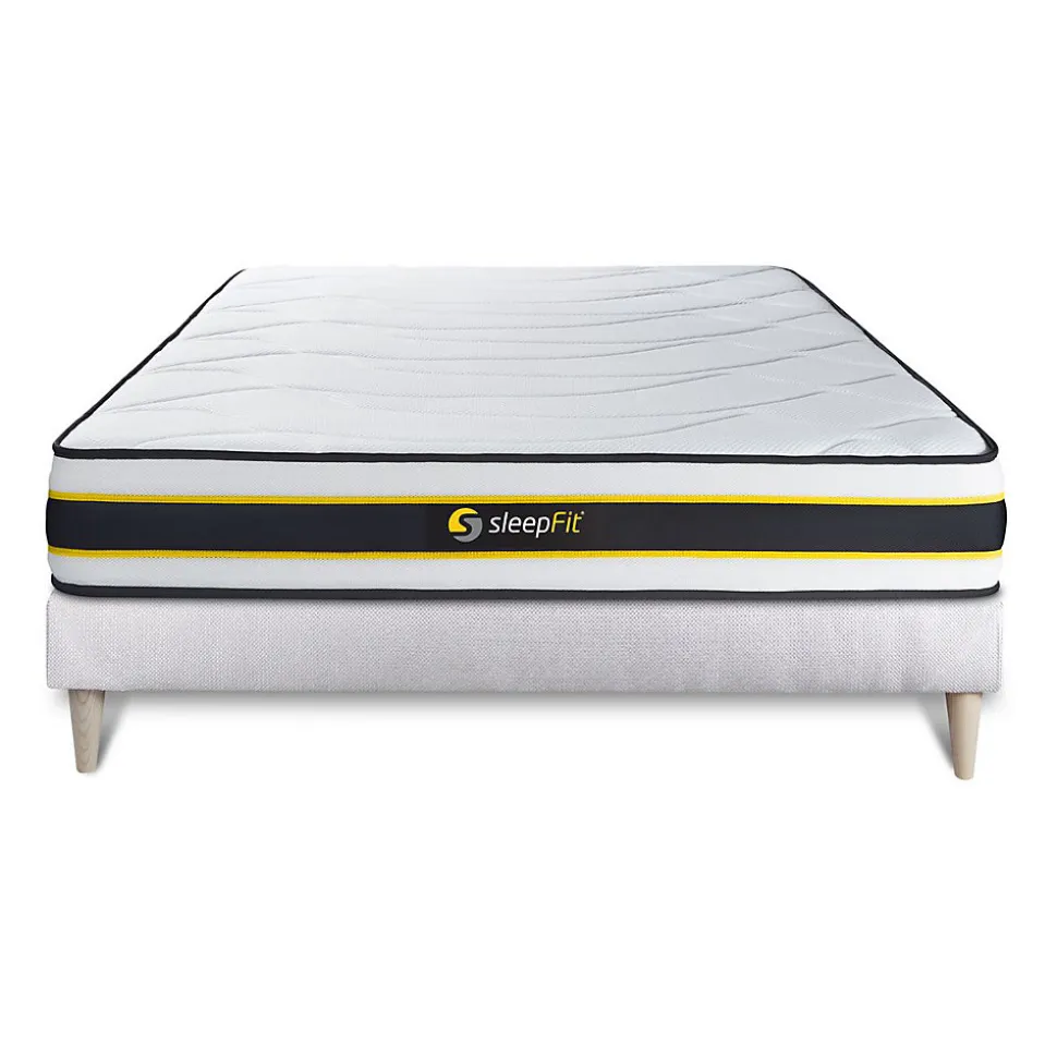 Sleepfit est une marque de matelas utilisés par les sportifs.Les matelas Sleepfit aspirent à vous offrir des nuits régénérantes et revitalisantes avec un soutien parfait du corps. Un matelas devrait toujours s’adapter à l’anatomie du corps et supprimer les points de pression susceptibles de bloquer la circulation sanguine. Quelle que soit votre morphologie vous obtiendrez une position de couchage idéale pour passer des nuits tranquilles, avec un sommeil de qualité propice à la décontraction musculaire.Le matelas FLEXY s’adapte à votre morphologie de sportif et procure un couchage de qualité en allégeant les points de pression. Le soutien équilibré point par point est apporté par les ressorts ensachés qui permettent une répartition homogène du poids du corps et une parfaite indépendance de couchage. L’accueil en mousse à mémoire de forme vise quant à elle à limiter les points de pression. Le corps a toutes les cartes en main pour se régénérer pendant la nuit et être d’attaque au réveil.- Type de matelas : Mémoire de forme et ressorts ensachés- Epaisseur : 22 cm- Confort : ferme- Accueil : Ferme avec mousse polyuréthane à mémoire de forme D55kg + mousse polyuréthane soft + Fibres 100% Polyester 350G/M2- Soutien : Ame 744 ressorts ensachés- Indépendance de couchage : Très bonne- Coutil : Tissu 100% polyester Micro perforé ultra-respirable- Bande latérale : Tissu 100 % polyester Micro perforé ultra-respirable- Face de couchage : Réversible- Certification : Label OEKO-TEX Standard 100- Nos matières premières sont certifiées par le label textile OEKO-TEX- Type de sommier : Sommier tapissier Monobloc- Nombre de lattes : Multi 12 lattes en peuplier massif- Structures et traverses de renfort en peuplier massif- Garnissage fibres 100% Polyester 120G/M2- Tissu Maille 100% polyester 260 G/M2- Toile de fond anti-poussières 100% polyester- Hauteur 14cm + Pie – Type de matelas : Mémoire de form