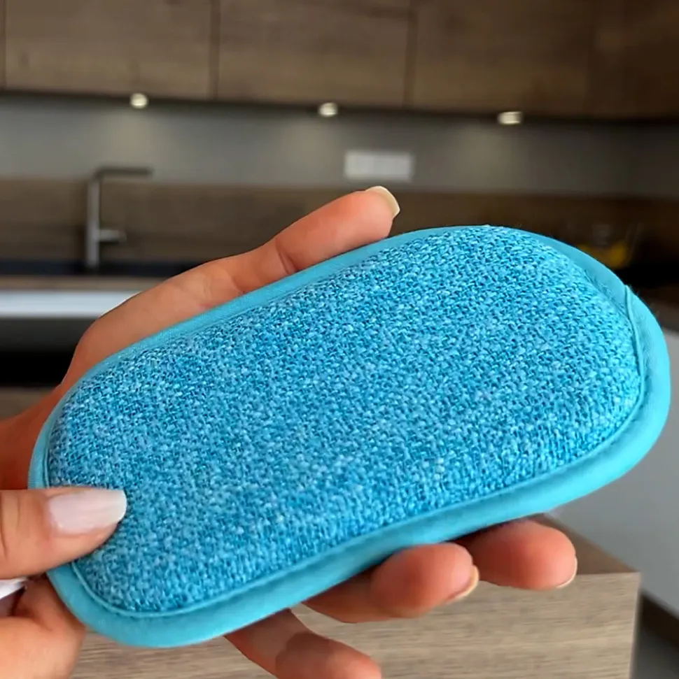 - 2 faces : 1 pour désincruster et 1 plus douce en microfibre