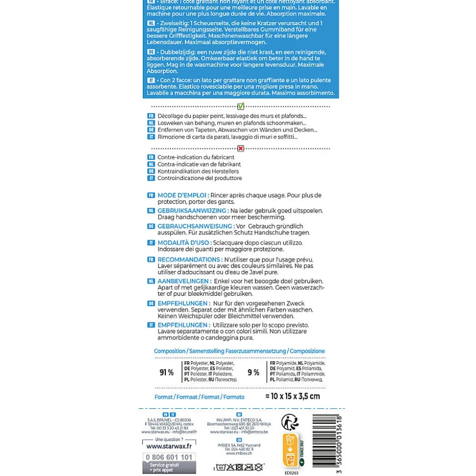 - biface, un côté grattant non rayant, un côté nettoyant absorbant