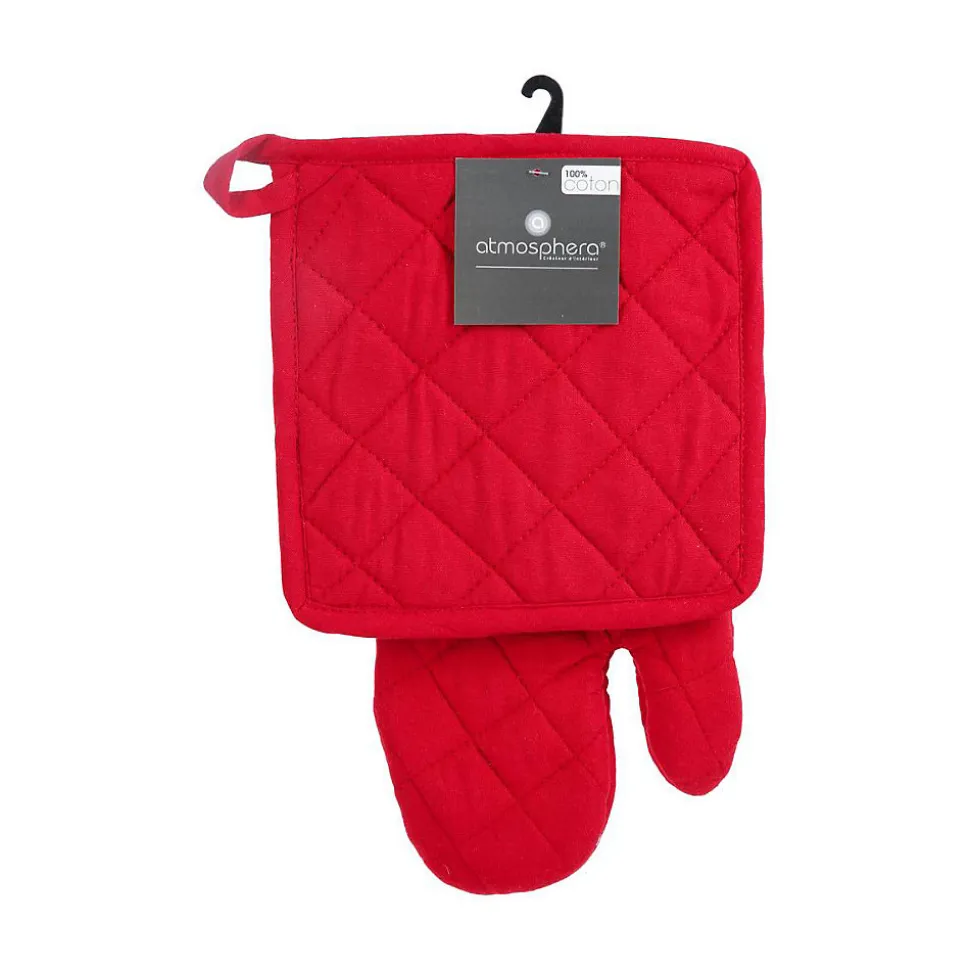 Résolument intemporel, le gant et manique Atmosphera vous permettra de cuisiner sereinement tout en apportant une touche rétro à votre déco.Un duo authentiqueCe gant et manique est composé d’un gant et d’une manique en coton surpiqué. Dotés d’accroches permettant de les suspendre facilement, ils sont lavables en machine et obéissent à des dimensions standards. Des basiques indispensables !Accrochez votre gant et manique sur une patère en bois et métal Atmosphera afin de jouer sur un mix de matières et d’ordonner votre cuisine.Le petit plus décoComplétez cet ensemble avec un tablier et des torchons de la même collection pour coordonner votre déco.