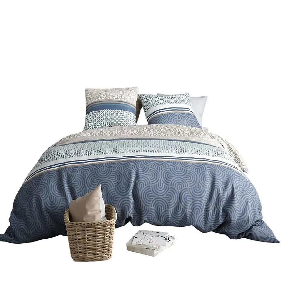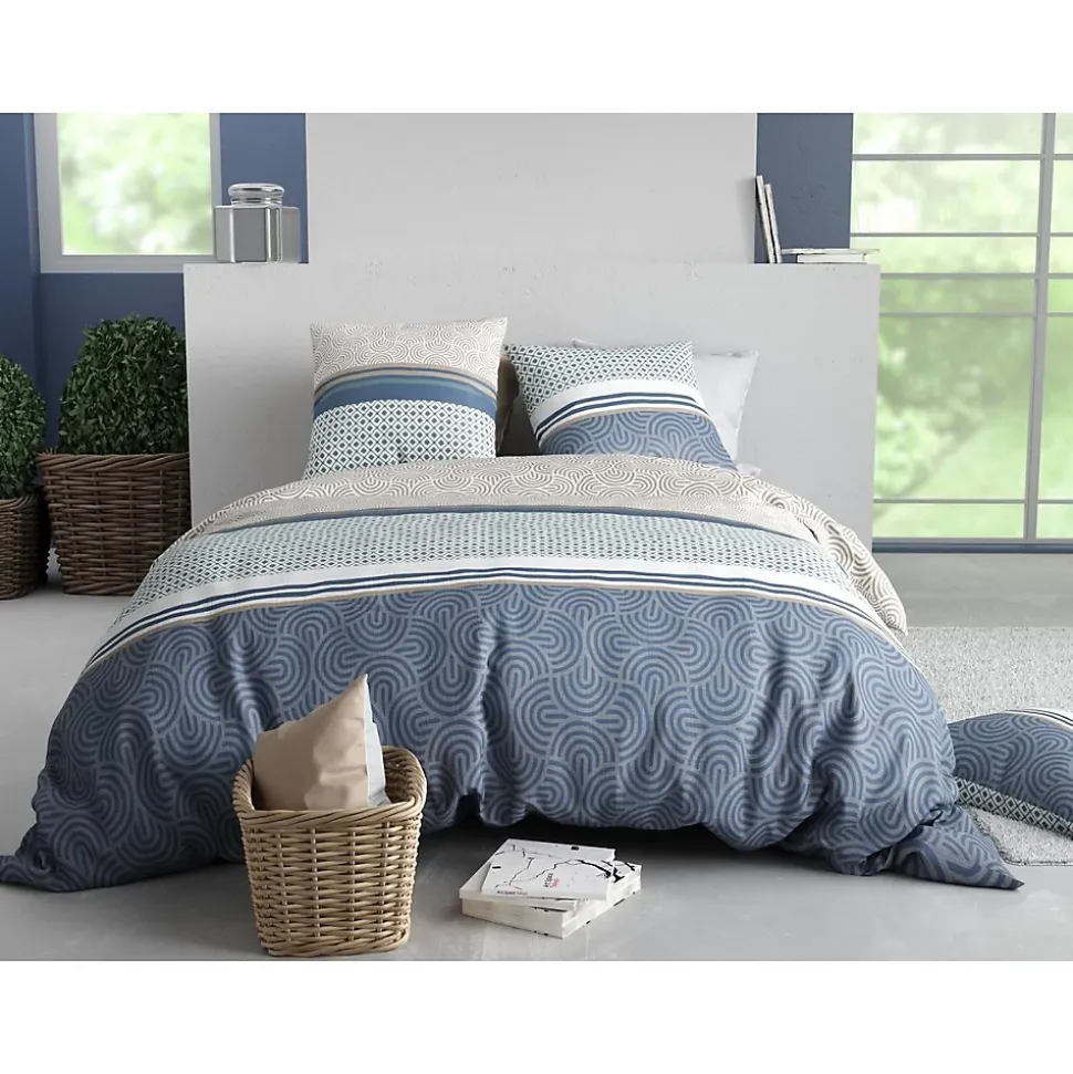 Apportez une touche d’élégance contemporaine à votre chambre avec cette parure de couette 240×260 cm en 100% coton. Grâce à son tissage serré de 57 fils/cm², elle allie confort, douceur et résistance pour des nuits paisibles. La parure se compose de : 1 housse de couette 240×260 cm avec fermeture à boutons 2 taies d’oreiller 63×63 cm finition portefeuille Avec son motif graphique bleu et beige, elle s’intègre parfaitement dans une chambre moderne et apporte une atmosphère apaisante et raffinée. Caractéristiques : Dimensions : housse 240×260 cm + 2 taies 63×63 cm Matière : 100% coton naturel, doux et respirant Qualité : 57 fils/cm² (tissage serré et durable) <p data-start= »1380″ data-end= »1440…